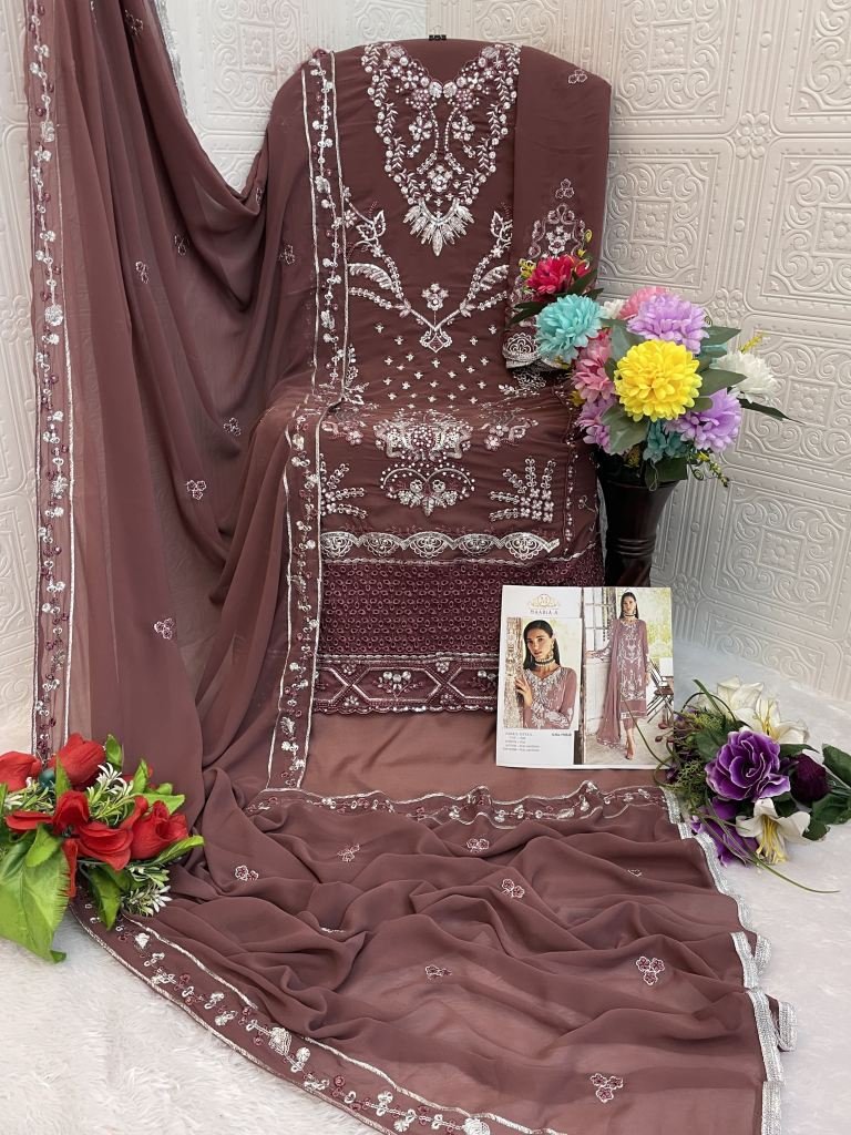 Maaria A Heavy Fox Georgette With Embroidery Sequence Work With Real Mirror & Stone Work Pakistani Suit Brown Color DN 1165