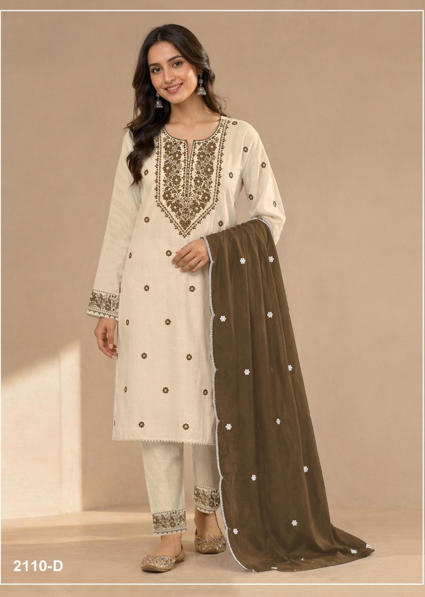 | NAME : | Mah E Rooh DN 2110 Khadi Cotton With Embroidery Work Pant Style Designer Suit Off White And Mehndi Color |