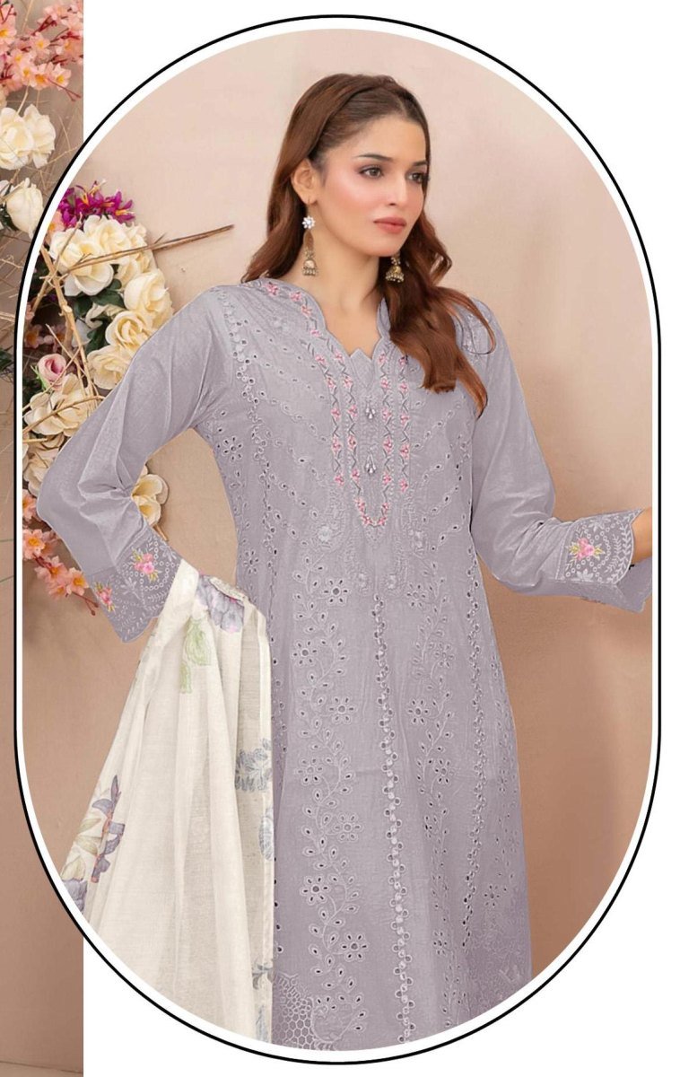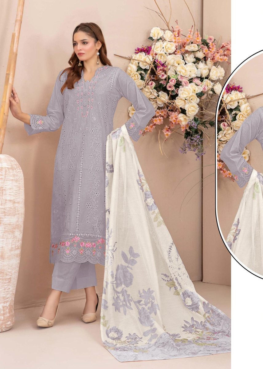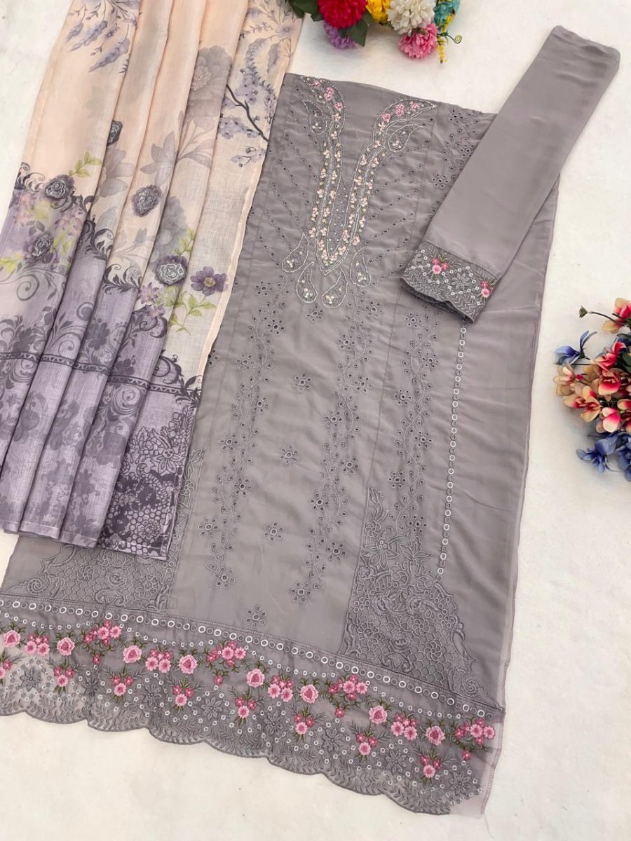 | NAME : | Mah E Rooh DN 5225 Faux Georgette With Heavy Embroidery With Khatli Work Pakistani Suit Grey Color |