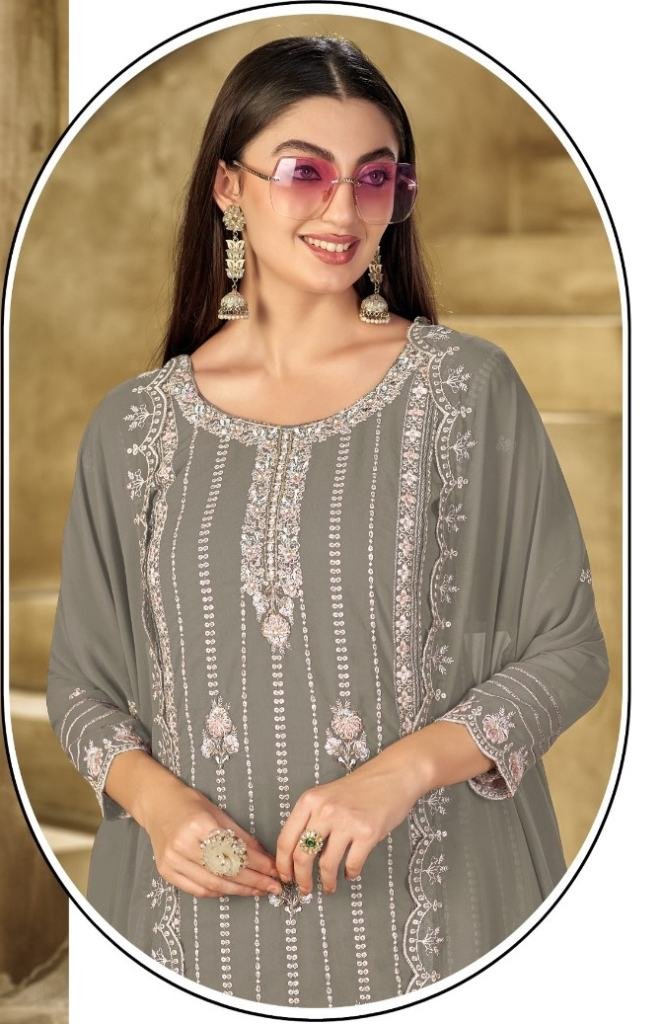 Mah E Rooh Exclusive Designer Heavy Faux Georgette Embroidered Sequence And Khatli Work Pakistani Suit Grey Color DN 2741