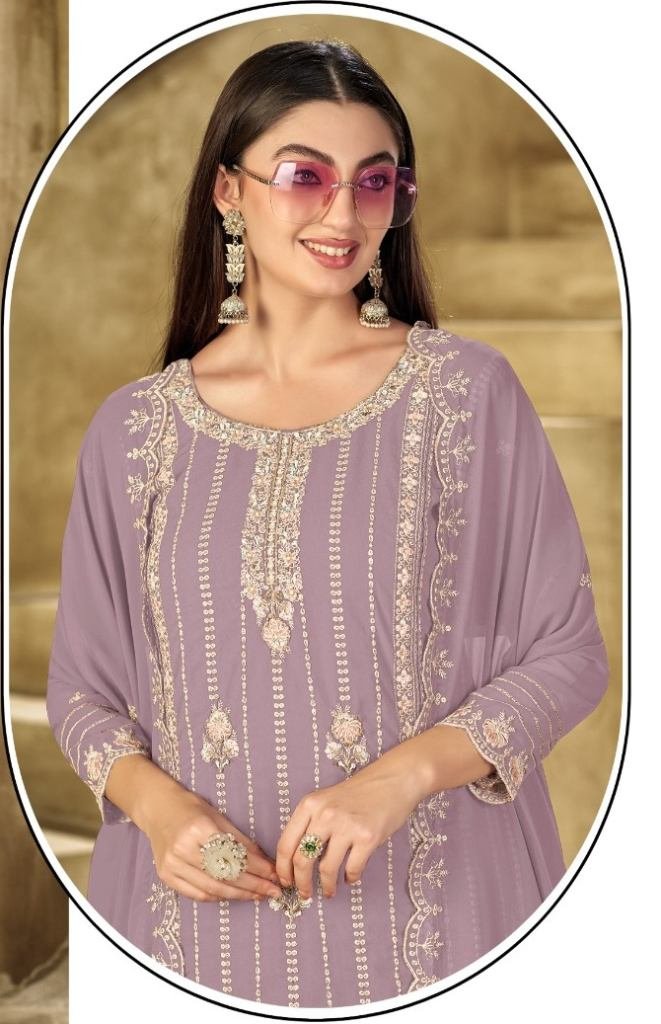 Mah E Rooh Exclusive Designer Heavy Faux Georgette Embroidered Sequence And Khatli Work Pakistani Suit Purple Color DN 2741