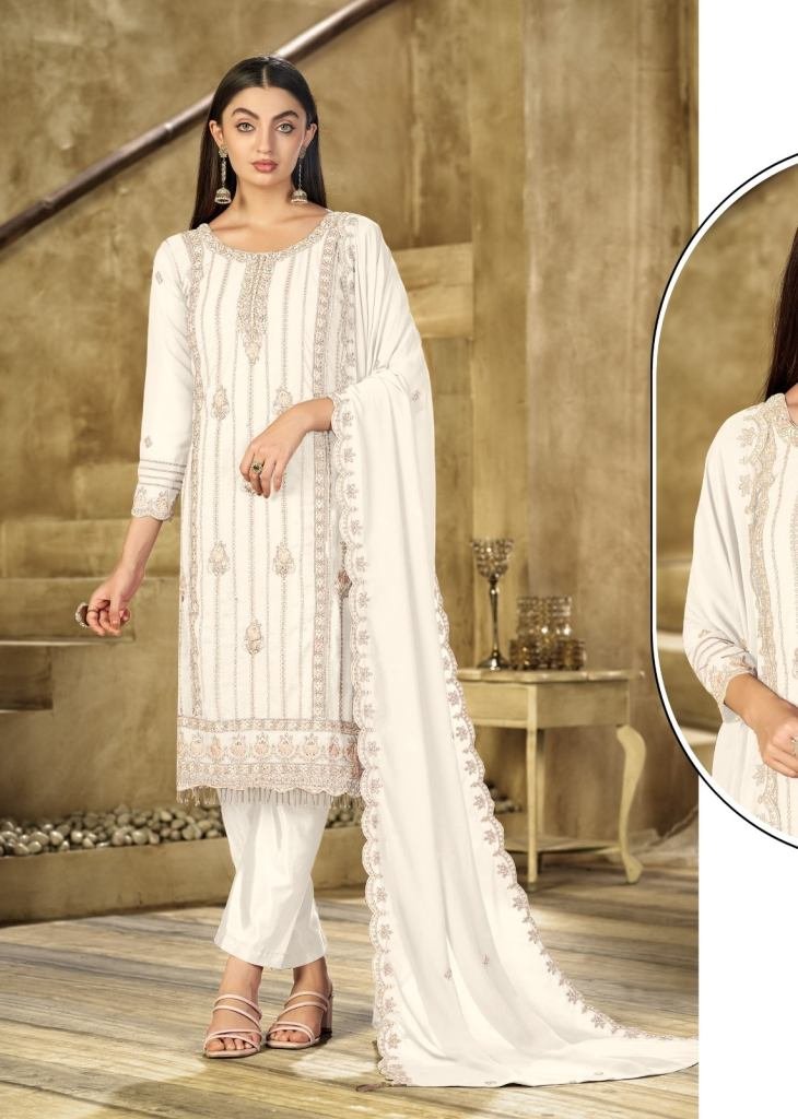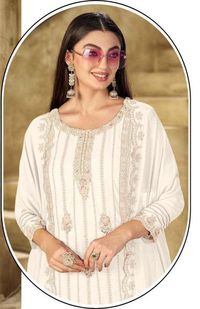 | NAME : | Mah E Rooh Exclusive Designer Heavy Faux Georgette Embroidered Sequence And Khatli Work Pakistani Suit White Color DN 2741 |