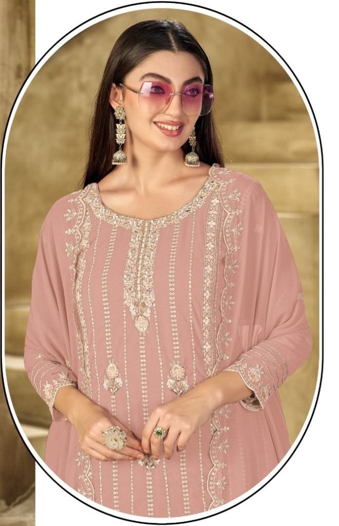 Mah E Rooh Exclusive Designer Heavy Faux Georgette Embroidered Sequence And Khatli Work Pakistani Suit Peach Color DN 2741
