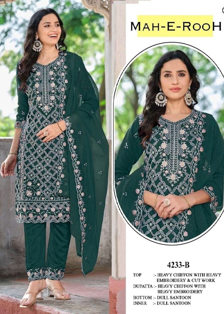 Mah E Rooh Heavy Chiffon With Embroidery And Sequence Work Pakistani Suit DN 4233