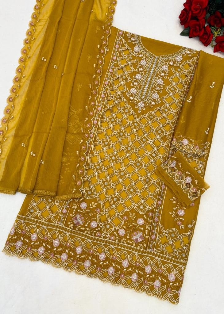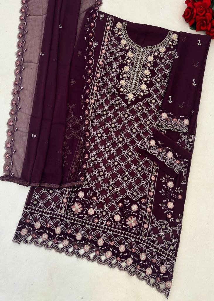 Today Presenting Pakistani Suit Heavy Chiffon with Embroidered Sequence work & Cut Work + Khatli Work
