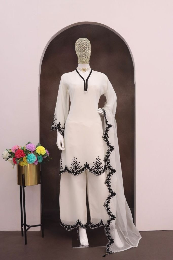 NAME : | Mah E Rooh Heavy Faux Georgette with Embroidered work Pakistani Suit White Color DN 5168 |