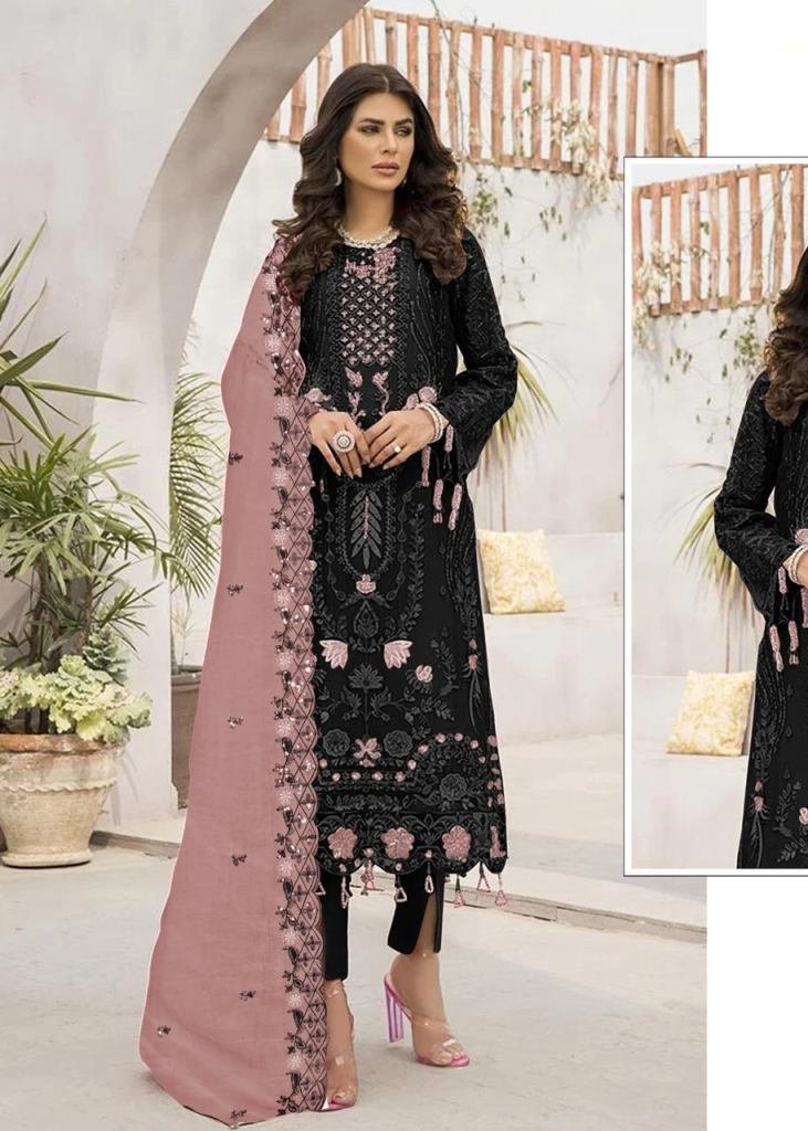 Mah-E-Rooh Premium Heavy Faux Georgette With Sequence Embroidered And Khatli Handwork Pakistani Suit Black Color DN 5154
