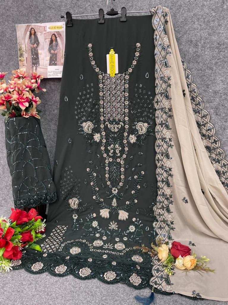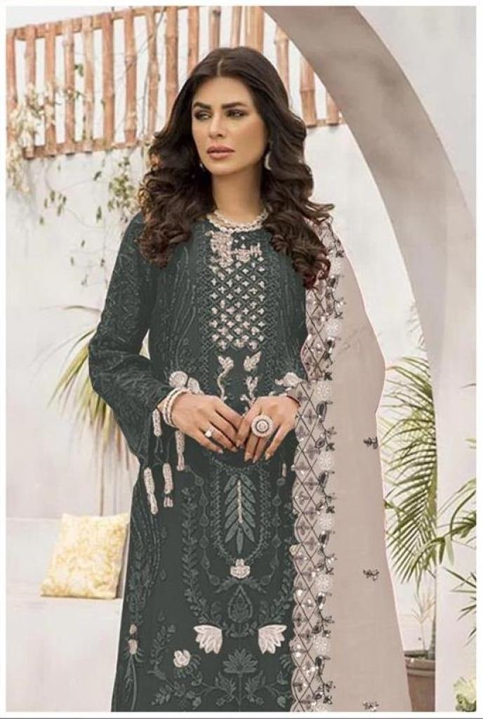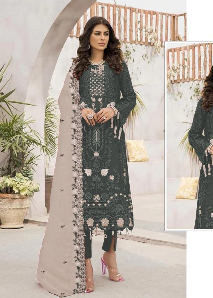 Mah-E-Rooh Premium Heavy Faux Georgette With Sequence Embroidered And Khatli Handwork Pakistani Suit Dark Grey Color DN 5154