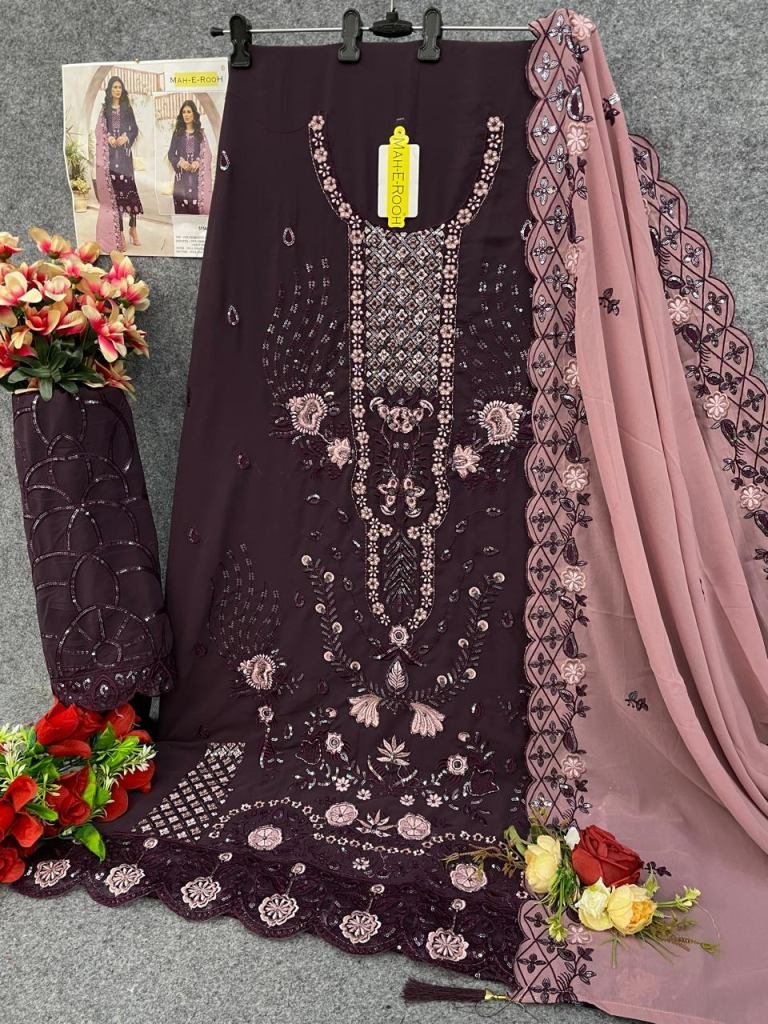 | NAME : | Mah-E-Rooh Premium Heavy Faux Georgette With Sequence Embroidered And Khatli Handwork Pakistani Suit Wine Color DN 5154 |