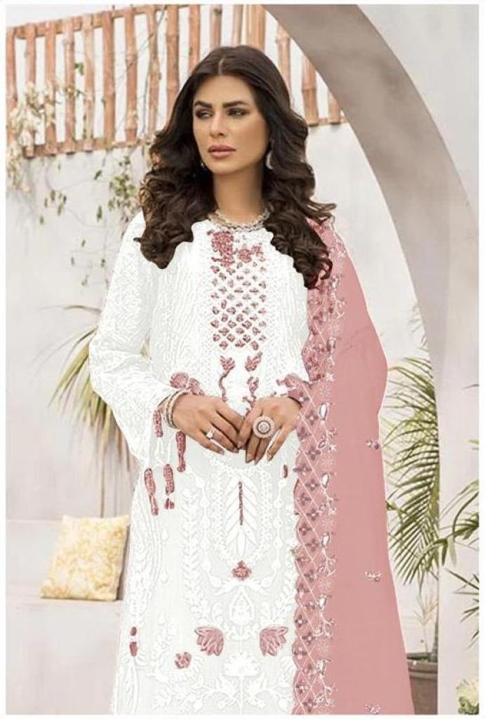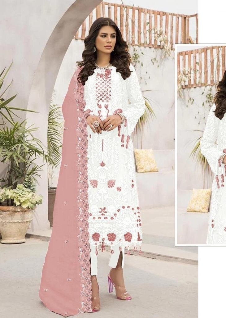 Mah-E-Rooh Premium Heavy Faux Georgette With Sequence Embroidered And Khatli Handwork Pakistani Suit White Color DN 5154