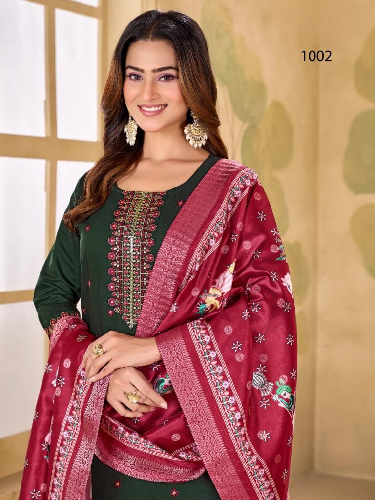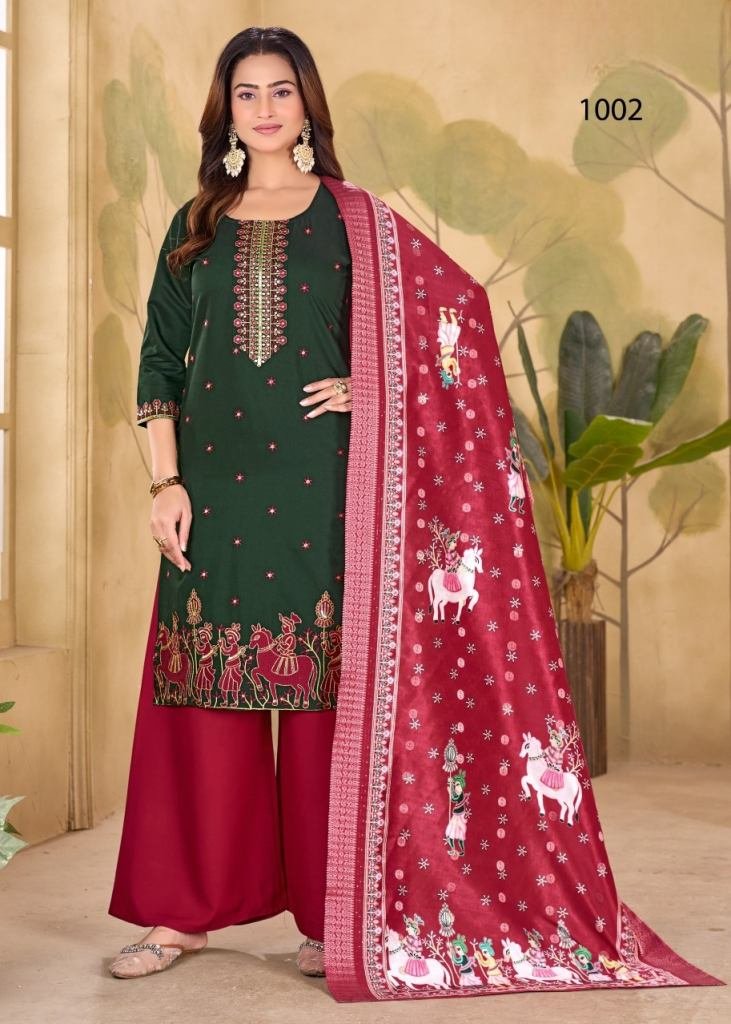 | NAME : | Mahotsav Gadhwal Silk Embroidery Work With Sequence Work Kurti Pant And Dupatta Set Green Color DN 1002 |