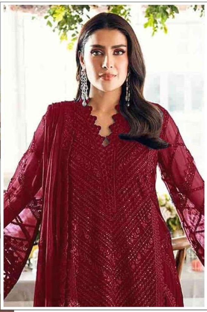Maria A Heavy Faux Georgette With Exquisite Embroidery And Sequence Khatli Work Pakistani Suit Maroon Color DN 1190