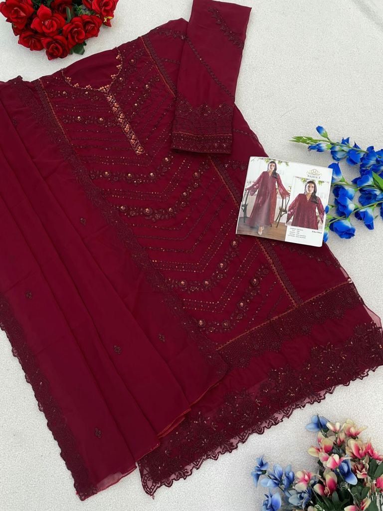 | NAME : | Maria A Heavy Faux Georgette With Exquisite Embroidery And Sequence Khatli Work Pakistani Suit Maroon Color DN 1190 |