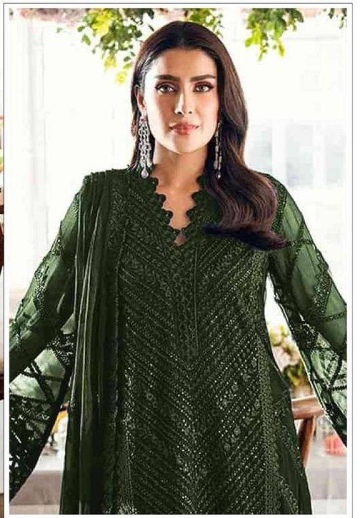 Maria A Heavy Faux Georgette With Exquisite Embroidery And Sequence Khatli Work Pakistani Suit Green Color DN 1190