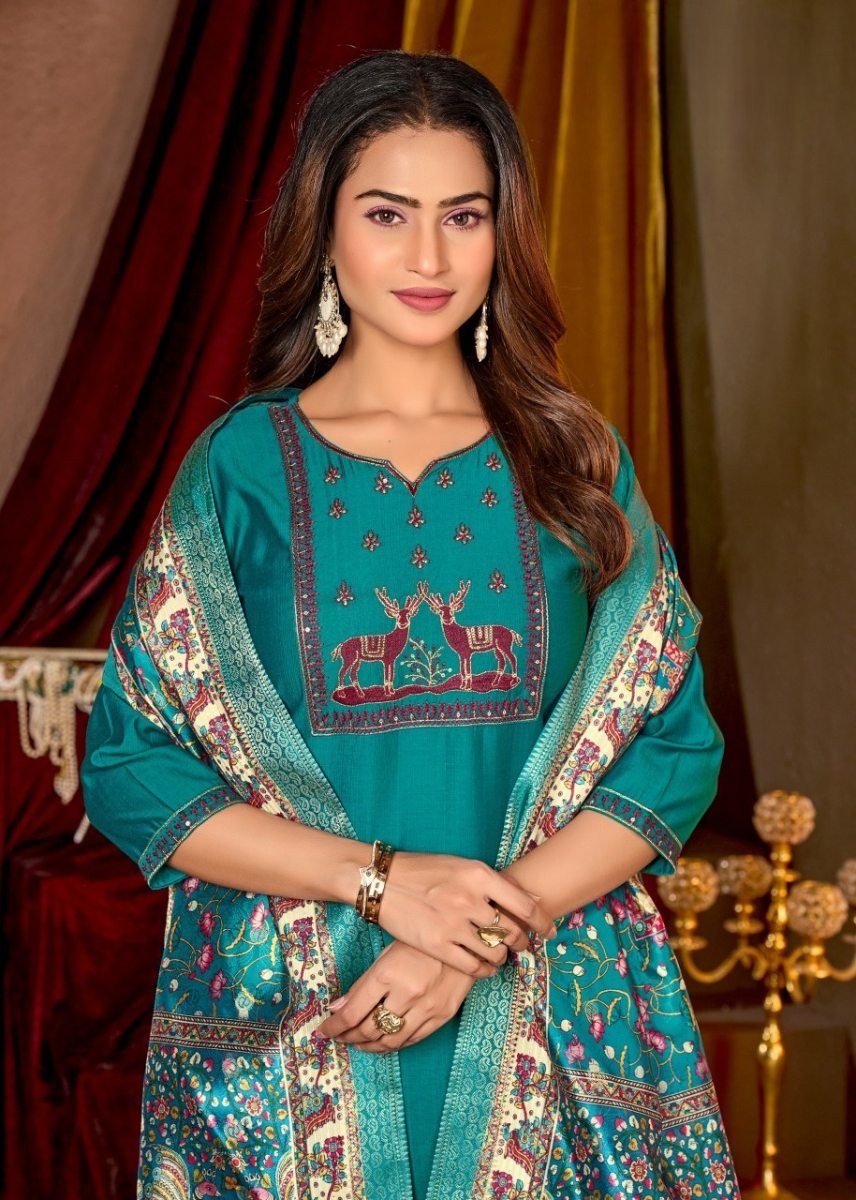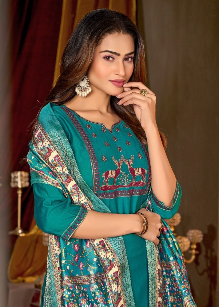 | NAME : | Monika Designer Vertical Silk Kurti Pant Dupatta Set With Heavy Sequence Embroidery In Teal Green Color |