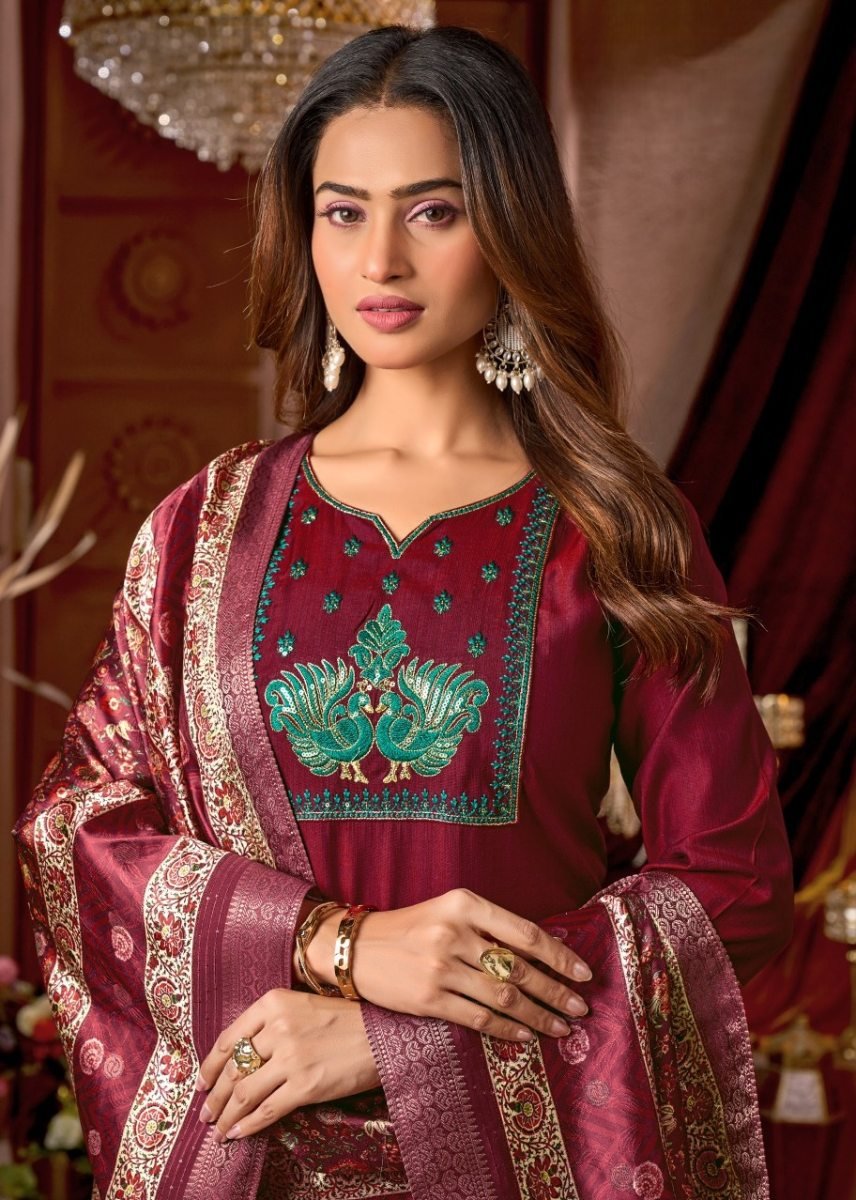 | NAME : | Monika Designer Vertical Silk Kurti Pant Dupatta Set With Heavy Sequence Embroidery In Maroon Color |