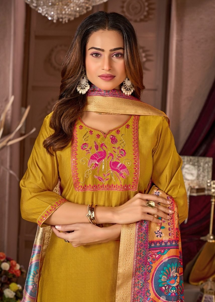 | NAME : | Monika Designer Vertical Silk Kurti Pant Dupatta Set With Heavy Sequence Embroidery In Mustard Yellow Color |