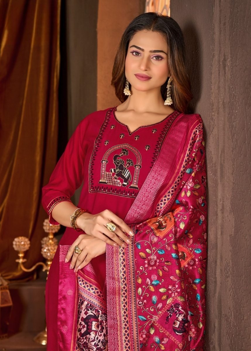 | NAME : | Monika Designer Vertical Silk Kurti Pant Dupatta Set With Heavy Sequence Embroidery In Red Color |