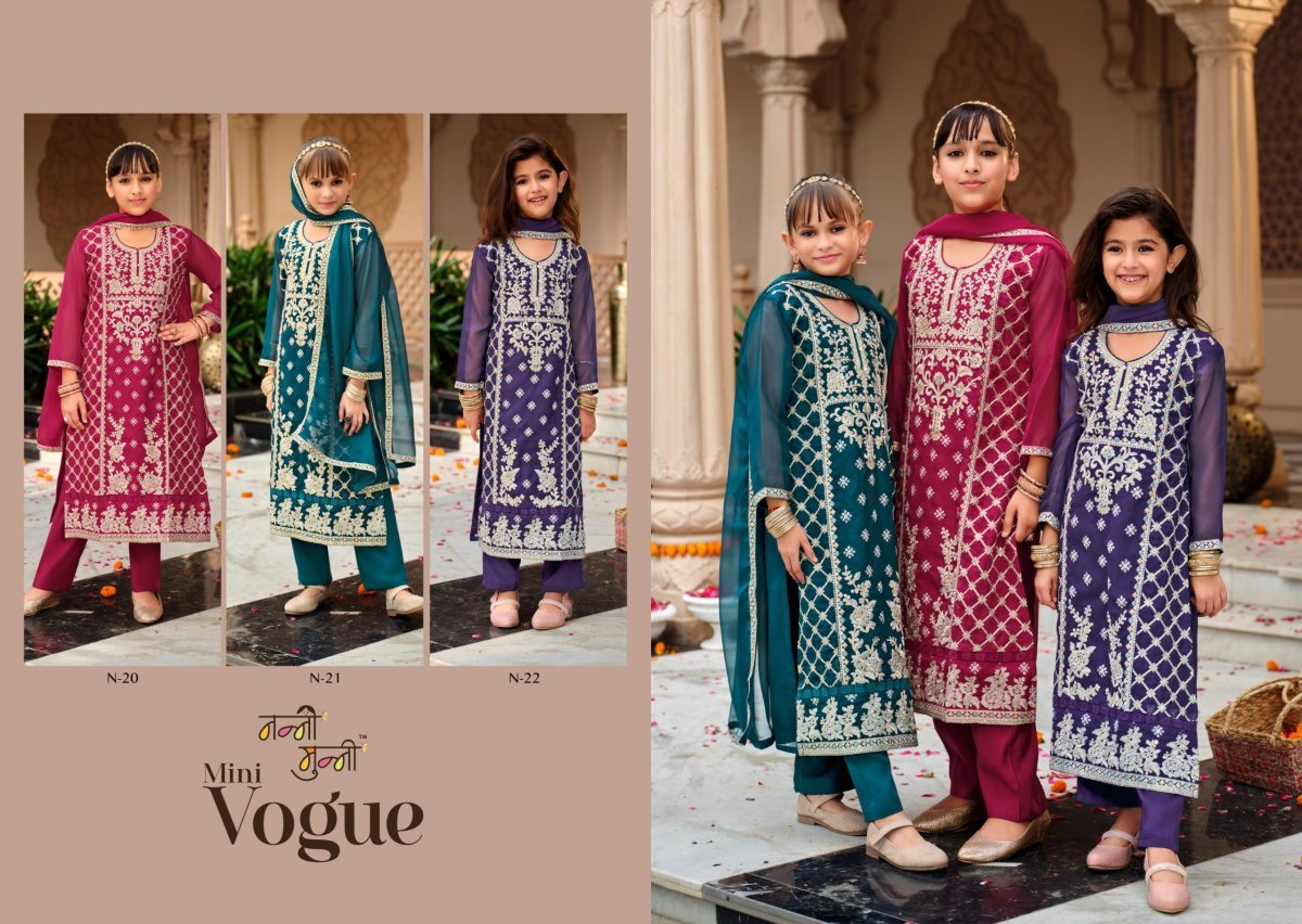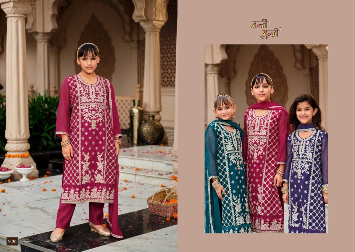 | NAME : | Nanni Munni Mini Vogue Organza With Embroidery Work Top Pant And Dupatta Set |
