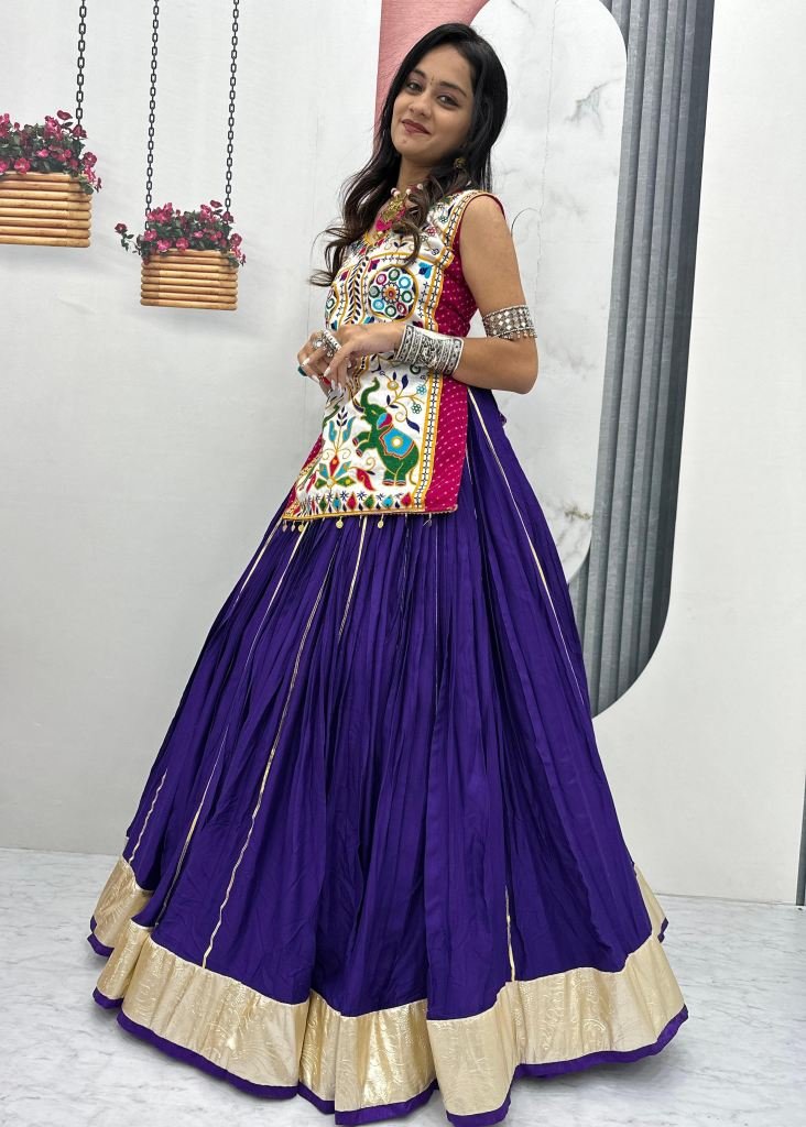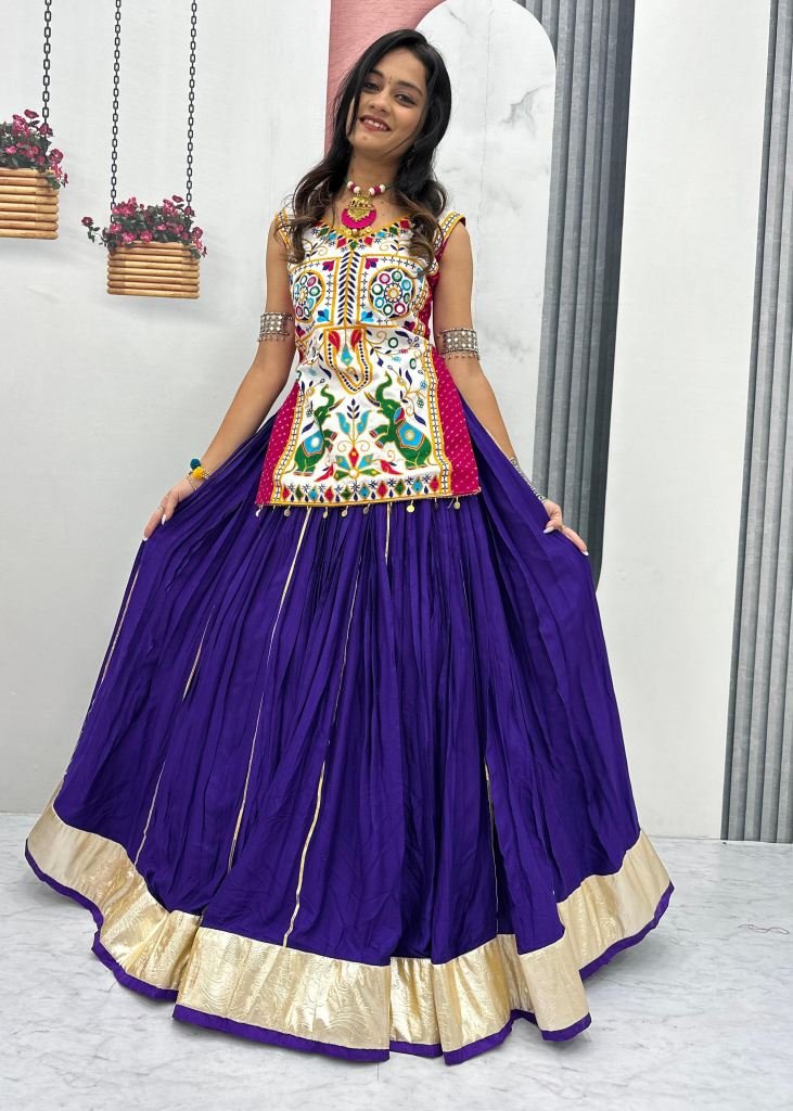 NAME : | Navratri Festival Pure Cotton Heavy Gamathi Work With Real Mirror Work With Lace Border Lehenga Choly Blue Color DN N43 |