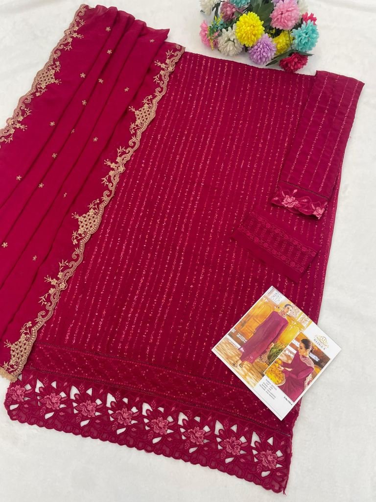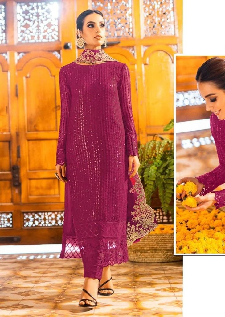 Pakistani Maaria A Premium Heavy Faux Georgette Suit With Embroidery And Sequence Work Pakistani Suit Magenta Color DN 1193