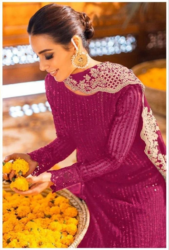 | NAME : | Pakistani Maaria A Premium Heavy Faux Georgette Suit With Embroidery And Sequence Work Pakistani Suit Magenta Color DN 1193 |
