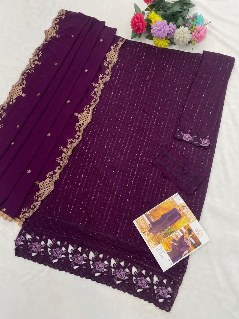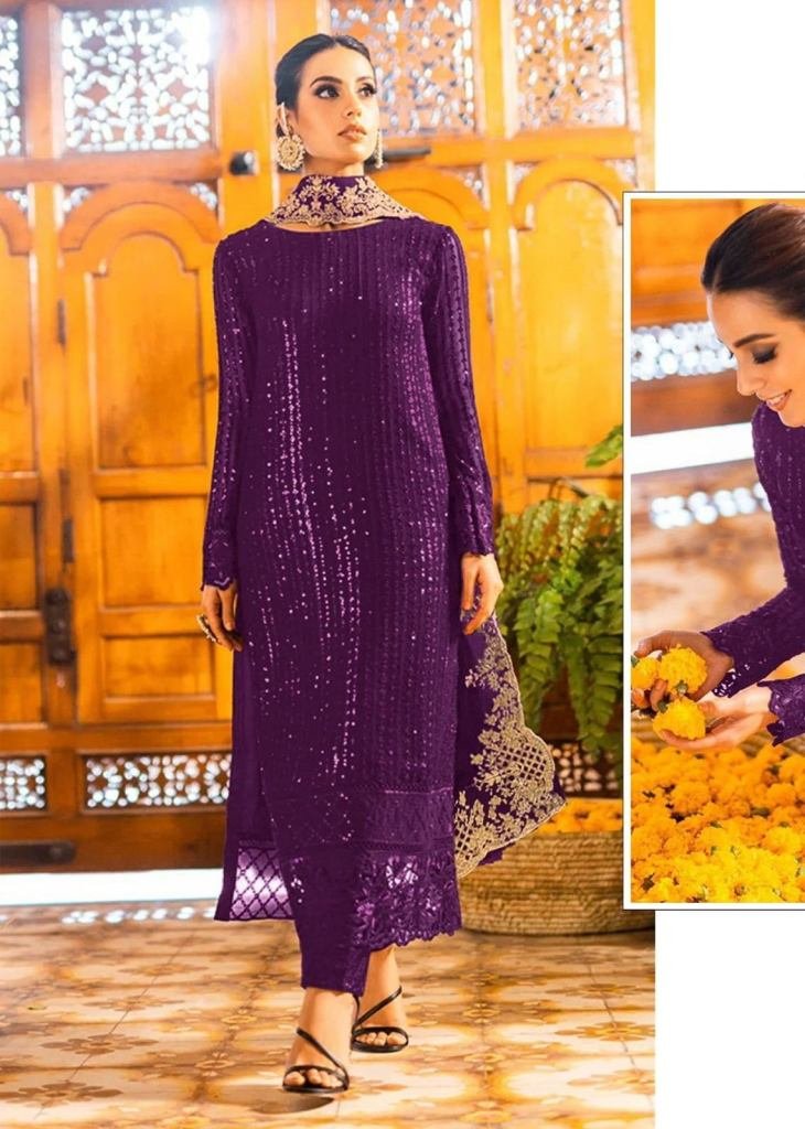 Pakistani Maaria A Premium Heavy Faux Georgette Suit With Embroidery And Sequence Work Pakistani Suit Purple Color DN 1193