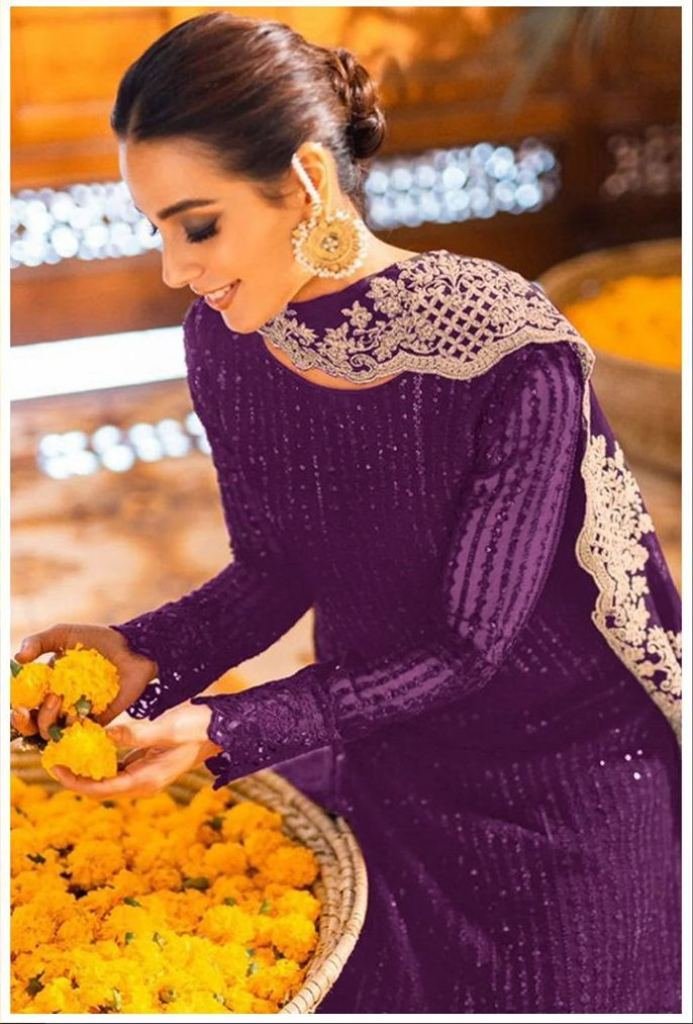 | NAME : | Pakistani Maaria A Premium Heavy Faux Georgette Suit With Embroidery And Sequence Work Pakistani Suit Purple Color DN 1193 |
