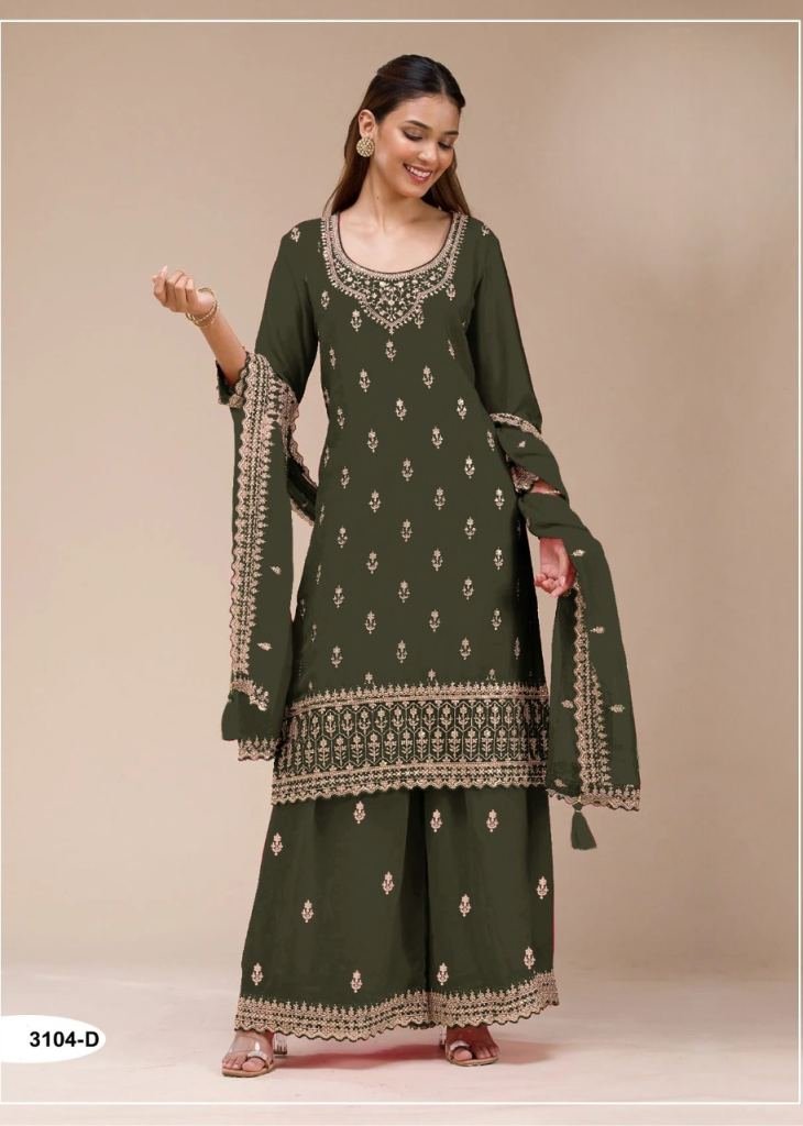 | NAME : | Palazzo Suit Blooming Georgette With Heavy Embroidery Sequence Work Mehendi color DN 3104 |