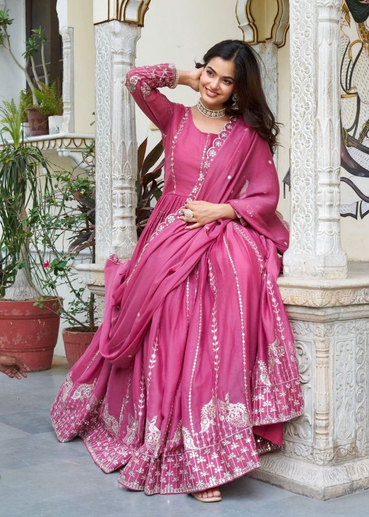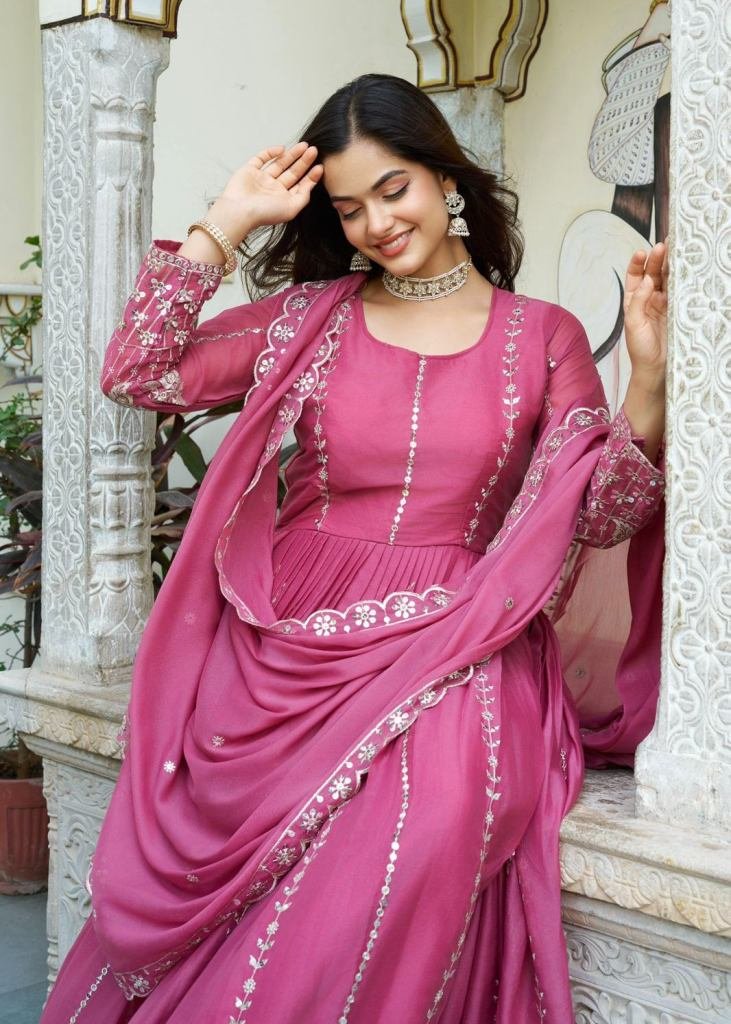 | NAME : | Premium Designer Ethnic Set Star Georgette With Sequence Embroidery Work Anarkali Gown With Dupatta Magenta Pink Color RM DN 139 |