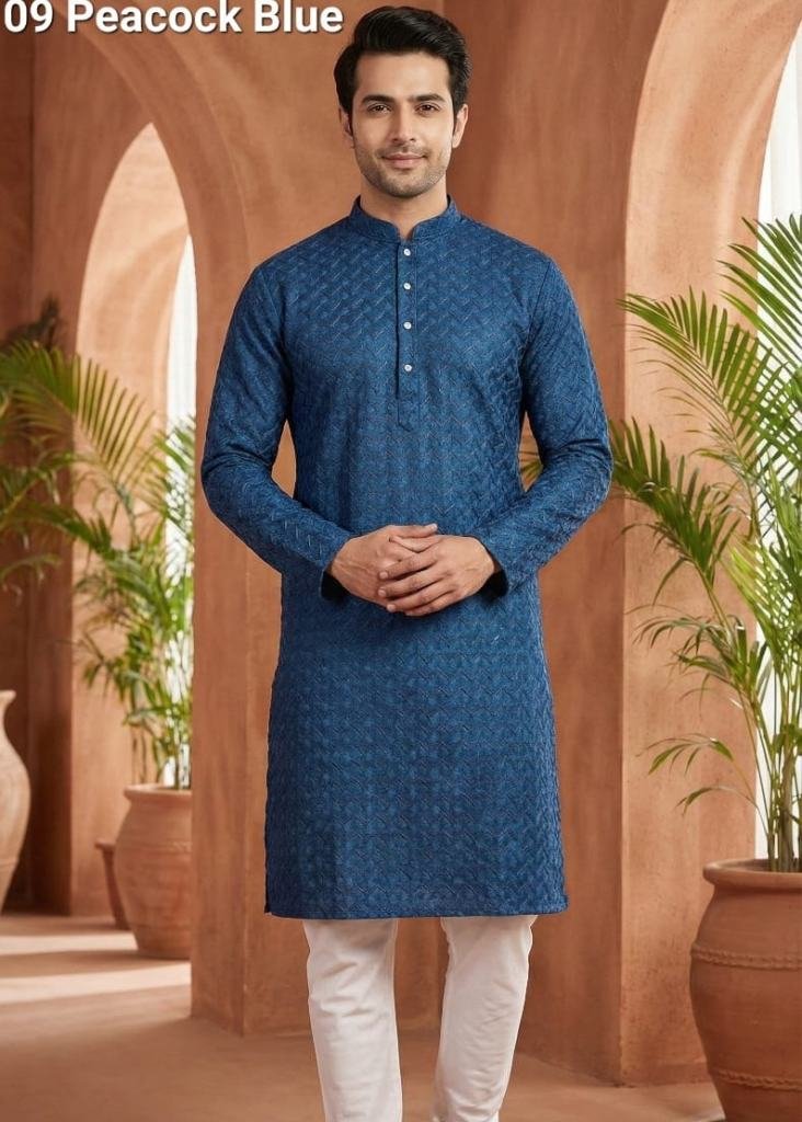 | NAME : | Premium Designer Kurta Pajama From New Classic Collection Peacock Blue Color DN 1001 |