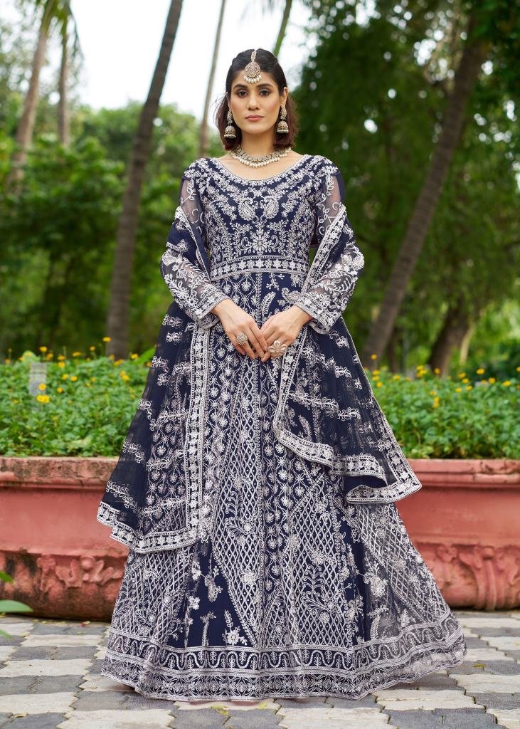 | NAME : | Premium Exclusive Festive Wear Pure Butterfly Net With Full Diamond Handwork Anarkali Gown Nevy Blue Color DN 3104 |