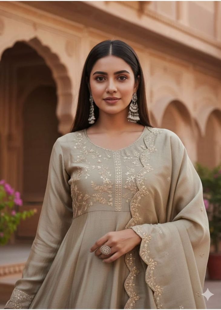 | NAME : | Premium Fully Stitched Anarkali Suit With Vichitra Silk And Intricate Cording Work Beige Color |