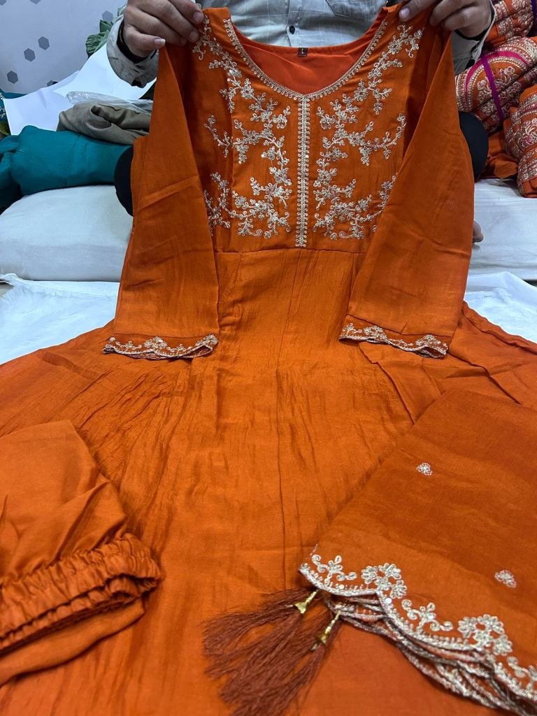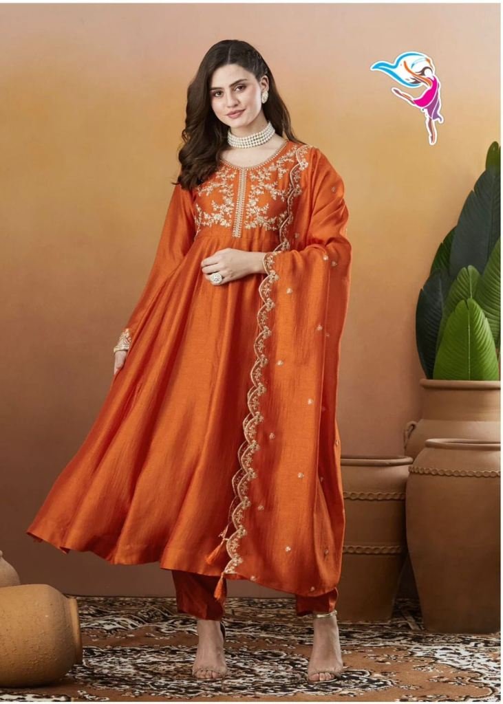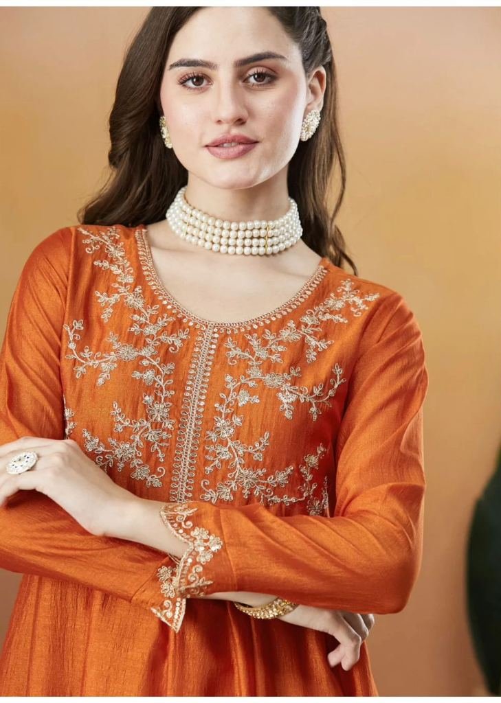 | NAME : | Premium Fully Stitched Anarkali Suit With Vichitra Silk And Intricate Cording Work Orange Color |