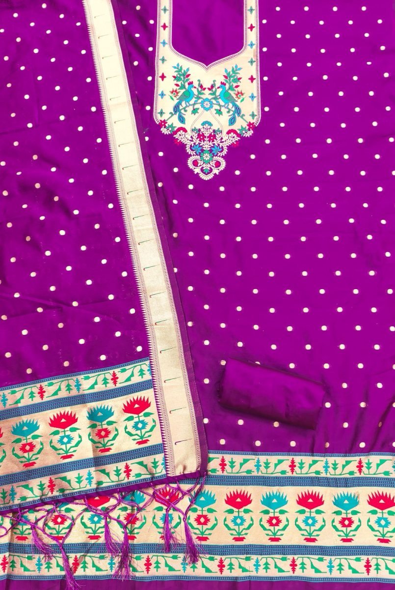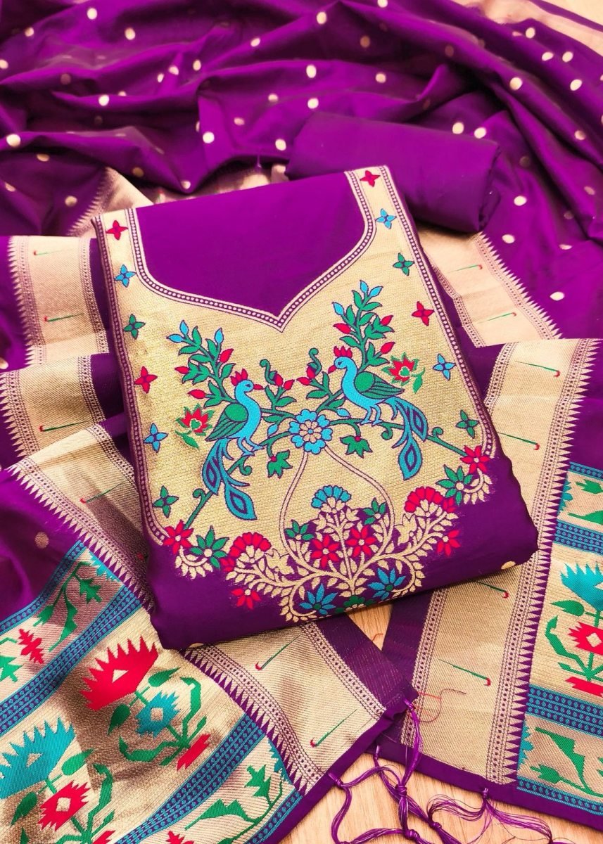 | NAME : | Premium Pure Zari Soft Banarasi Silk Suit Dress Material In Purple Color |