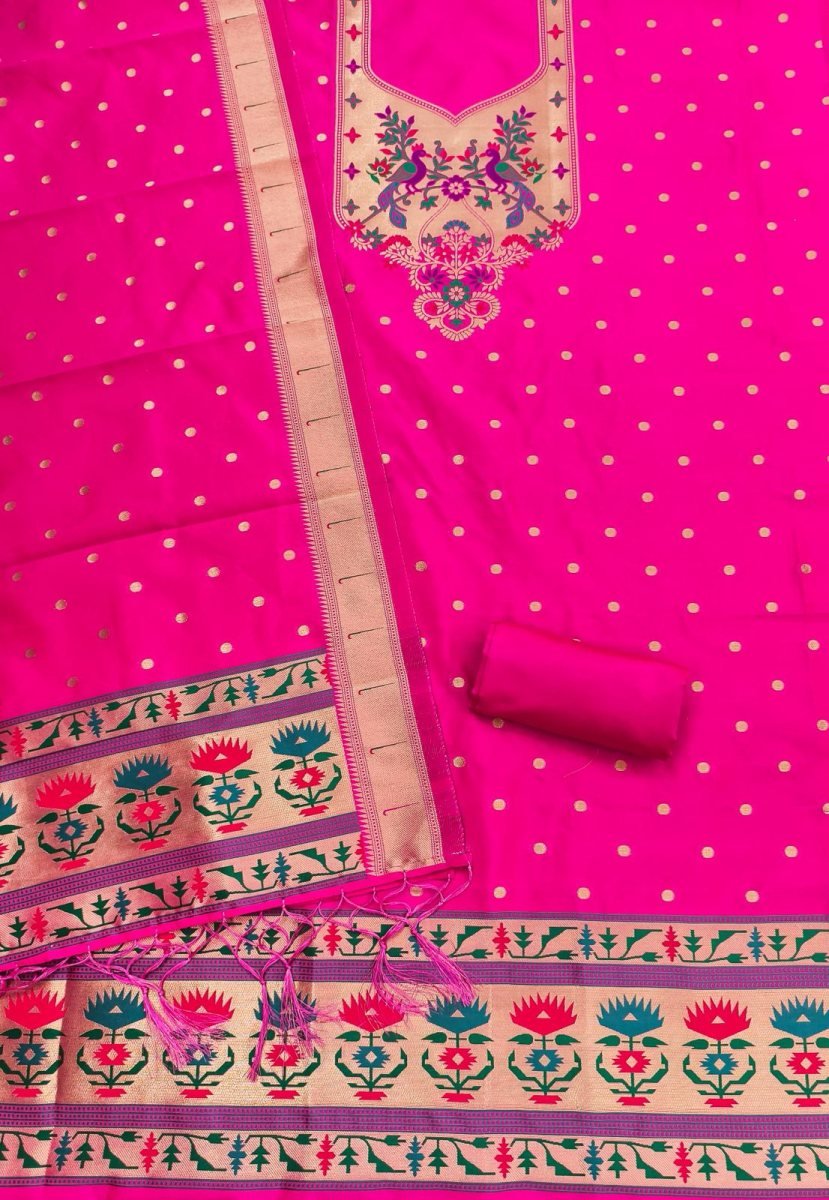 | NAME : | Premium Pure Zari Soft Banarasi Silk Suit Dress Material In Pink Color |