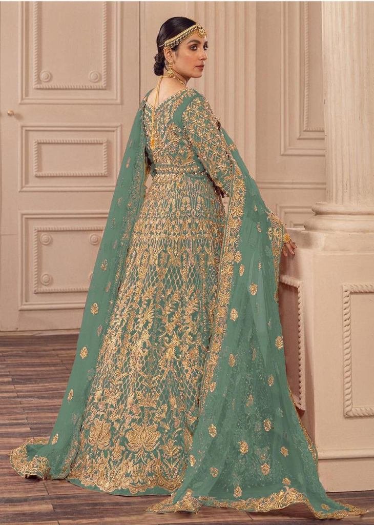 Presenting Bridal Anarkali Gown Boutique Collection With Heavy Butterfly Net Embroidery And Full Diamond Work Sky Color DN 1084