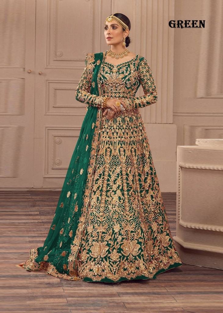 | NAME : | Presenting Bridal Anarkali Gown Boutique Collection With Heavy Butterfly Net Embroidery And Full Diamond Work Green Color DN 1084 |