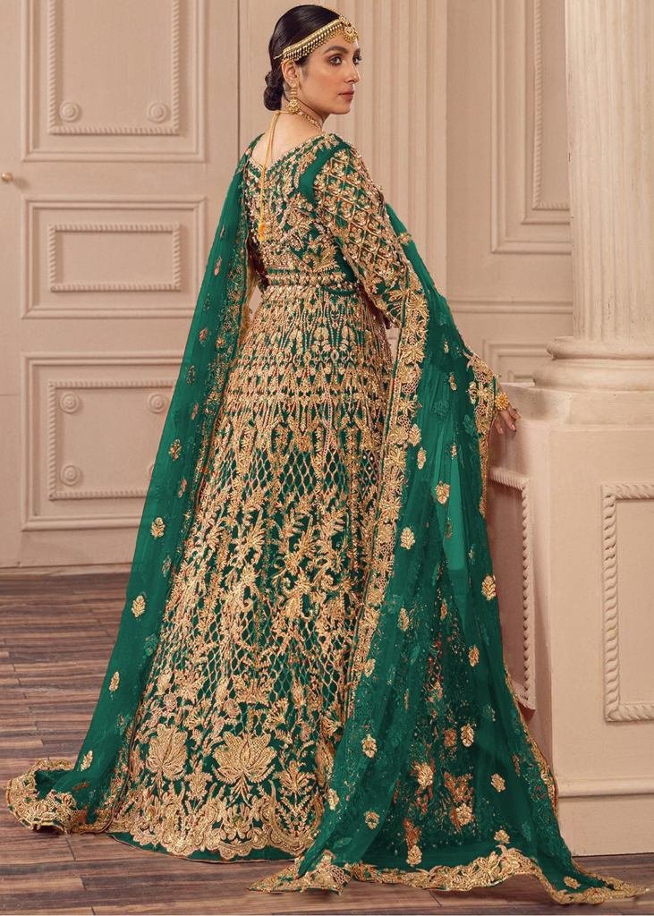 Presenting Bridal Anarkali Gown Boutique Collection With Heavy Butterfly Net Embroidery And Full Diamond Work Green Color DN 1084