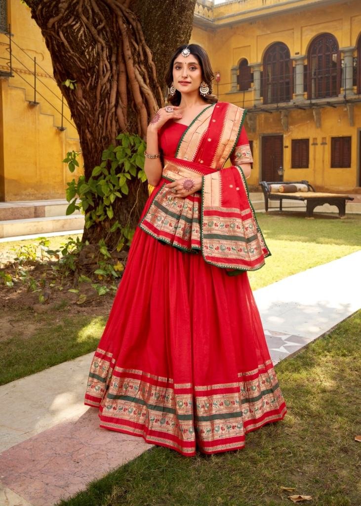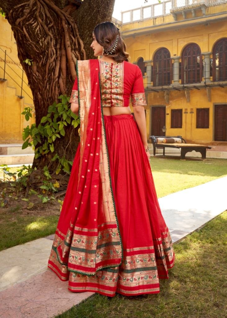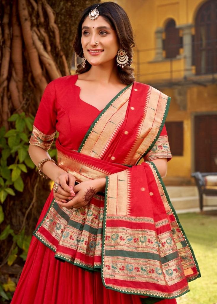 Pure Chanderi Paithani Lehenga Choli With Elegant Traditional Zari Weaving Rich Red Color DN 1903