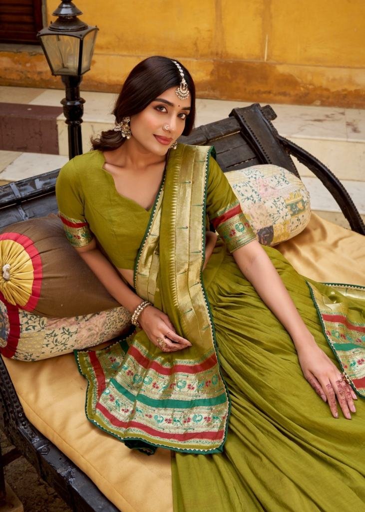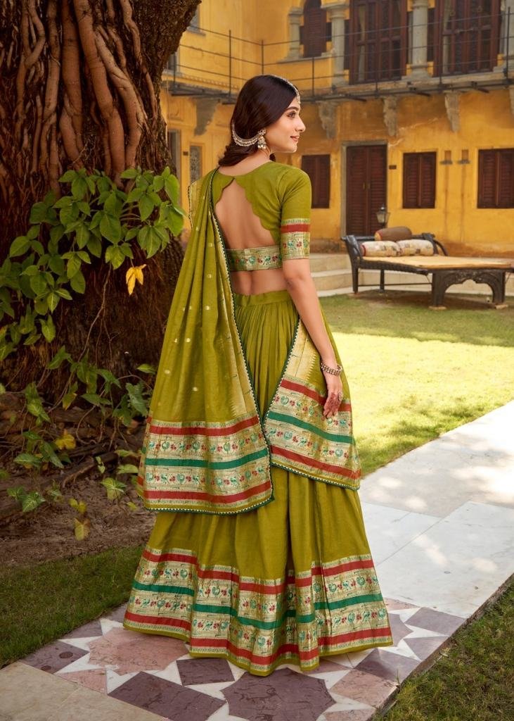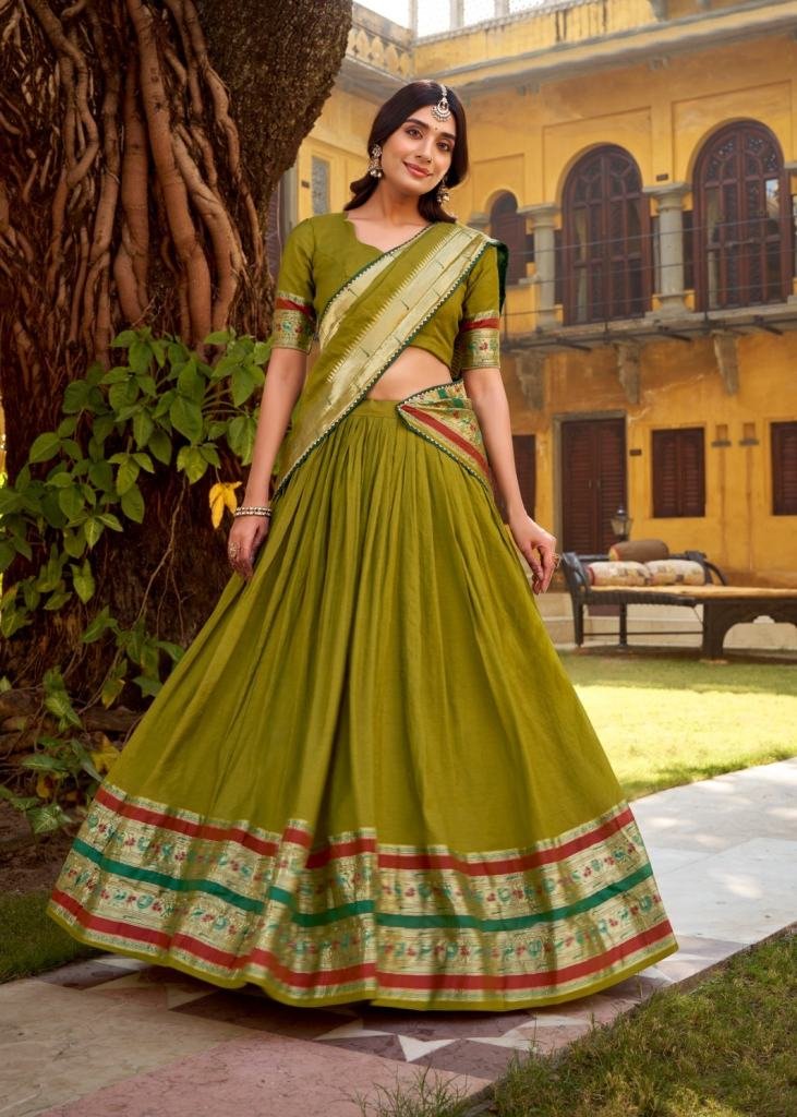 Pure Chanderi Paithani Lehenga Choli With Elegant Traditional Zari Weaving Mehndi Color DN 1903