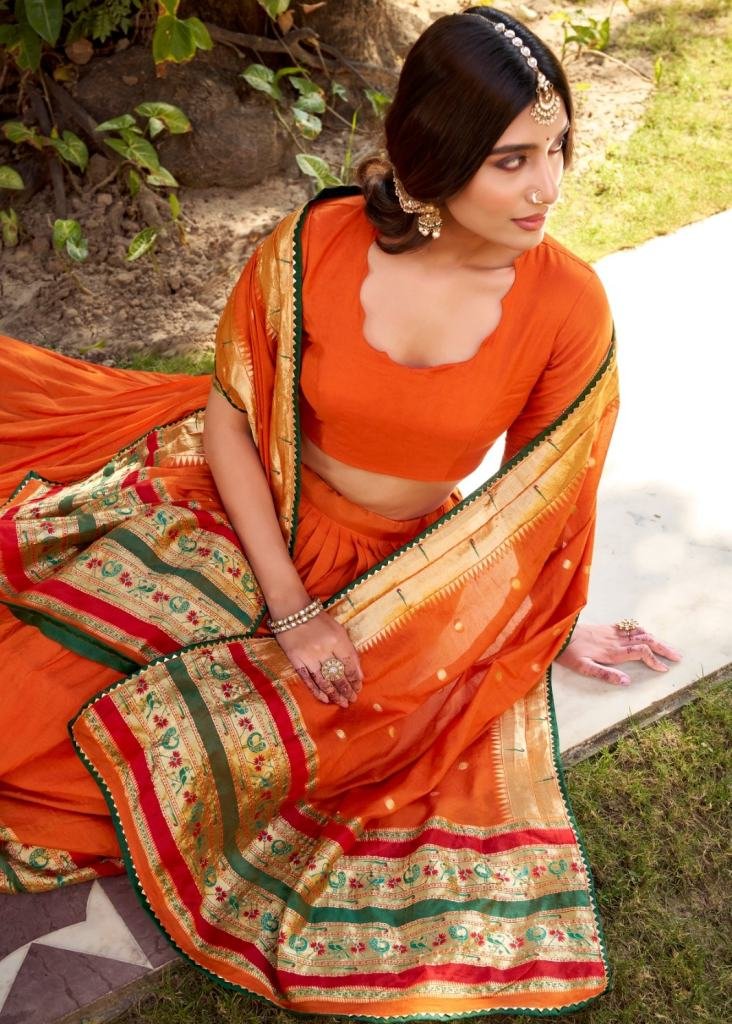 | NAME : | Pure Chanderi Paithani Lehenga Choli With Elegant Traditional Zari Weaving Orange Color DN 1903 |