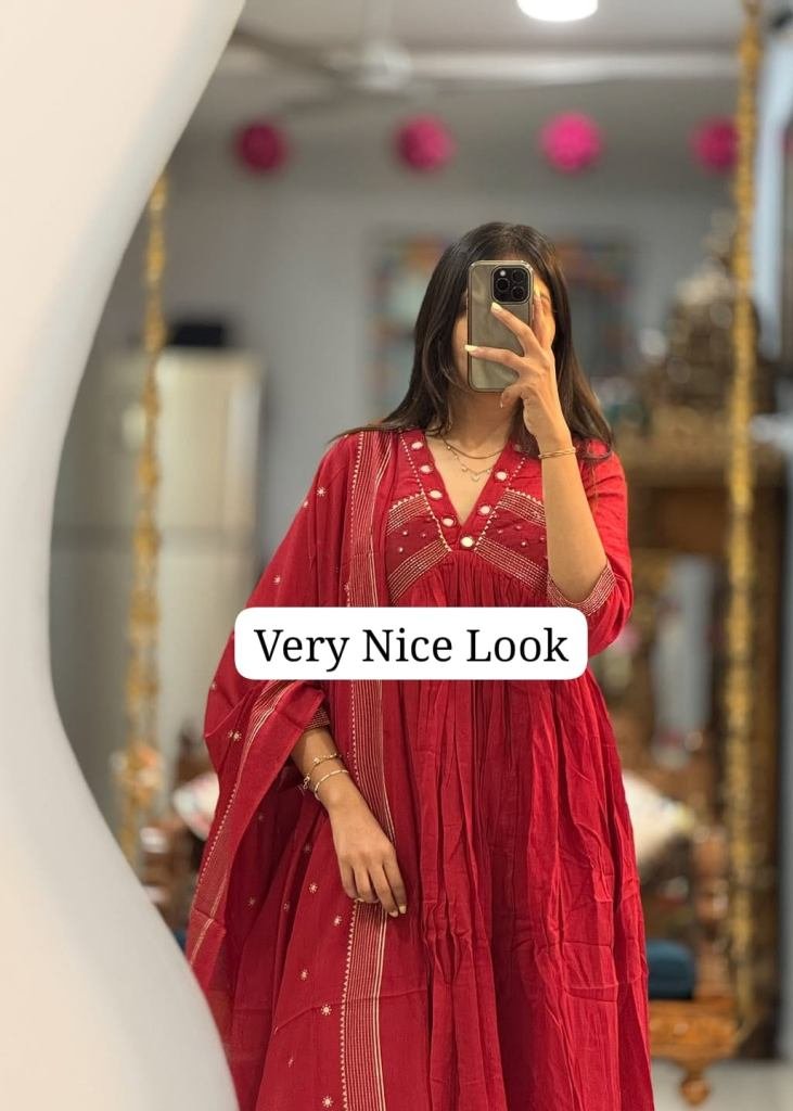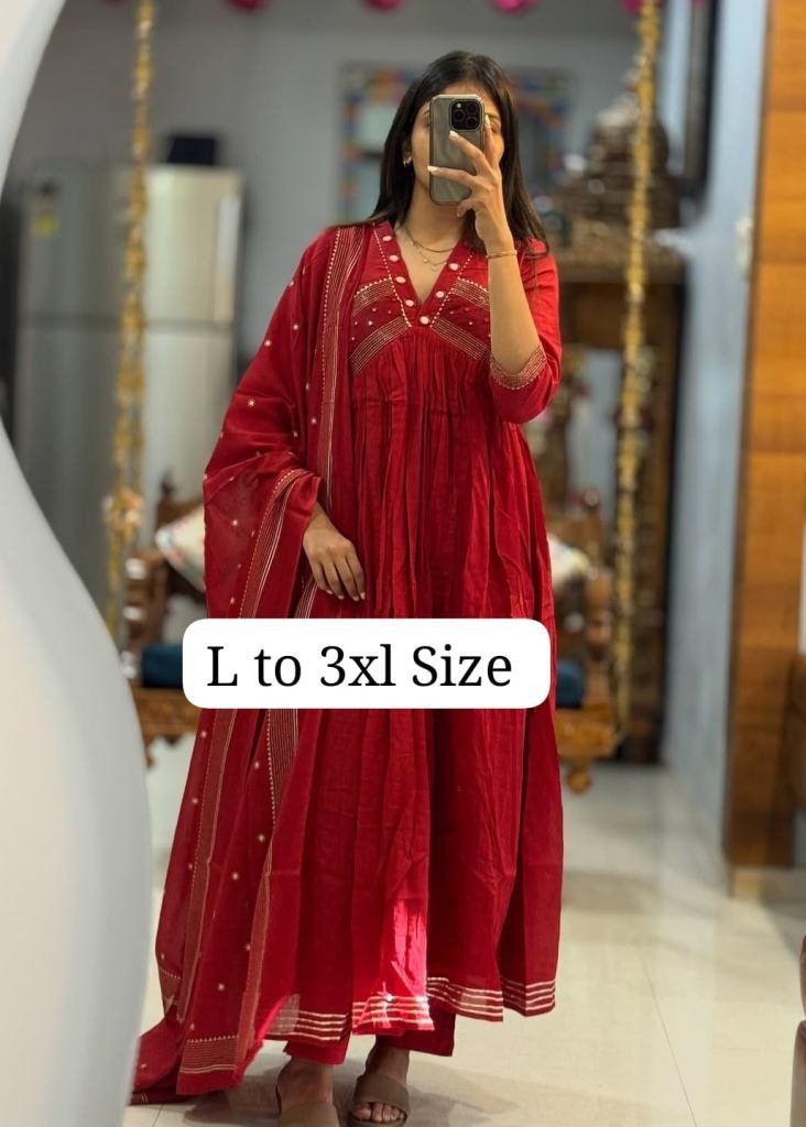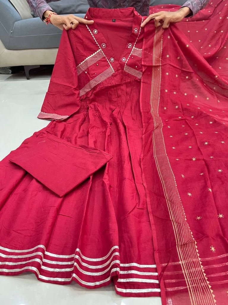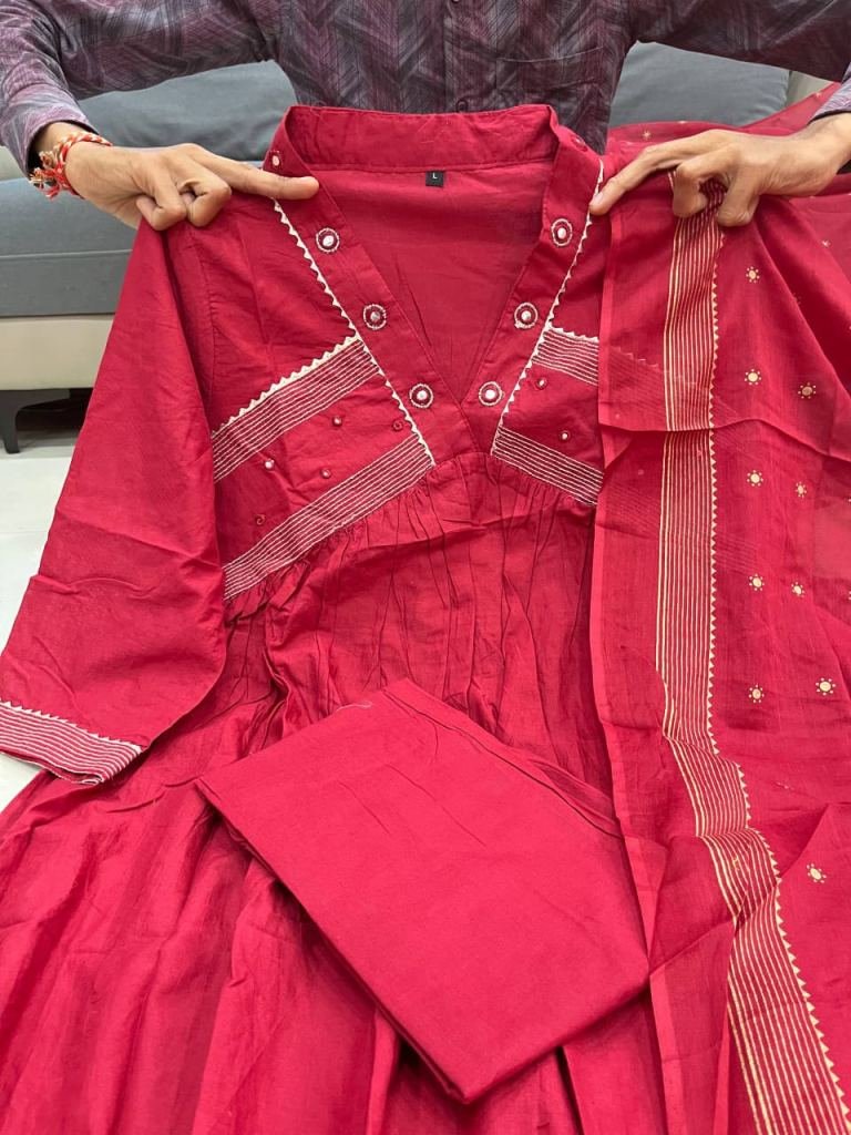 | NAME : | Rajhans Branded Pure Cotton 3 Piece Kurti Set With Handwork And Dupatta Red Color |