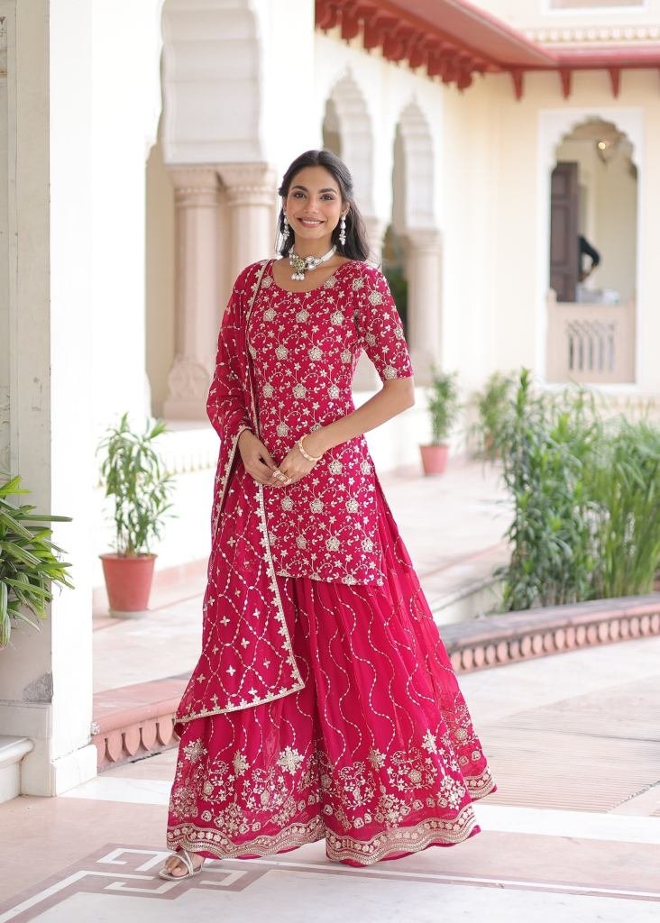 Today Presenting Readymade Sharara Suit With Embroidery Sequence Work