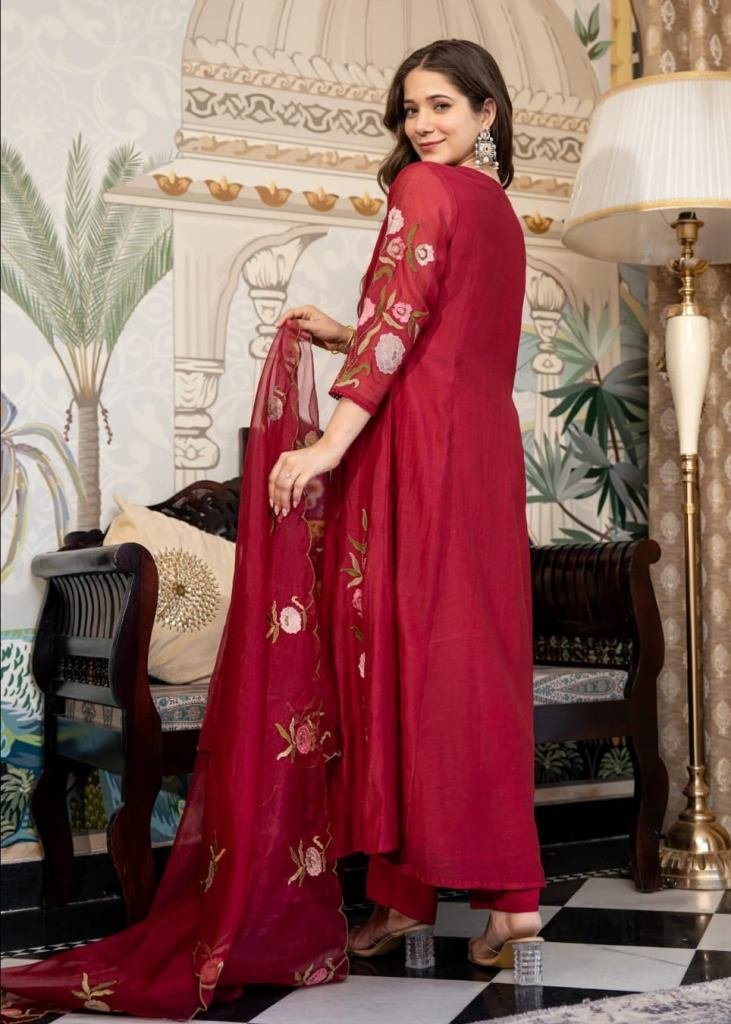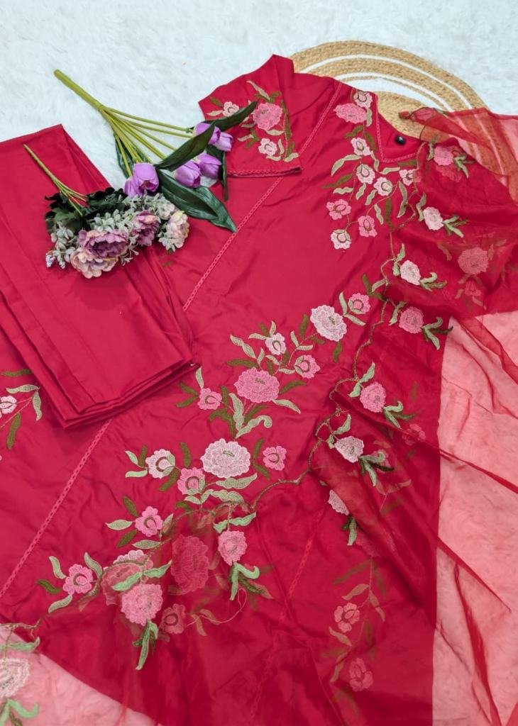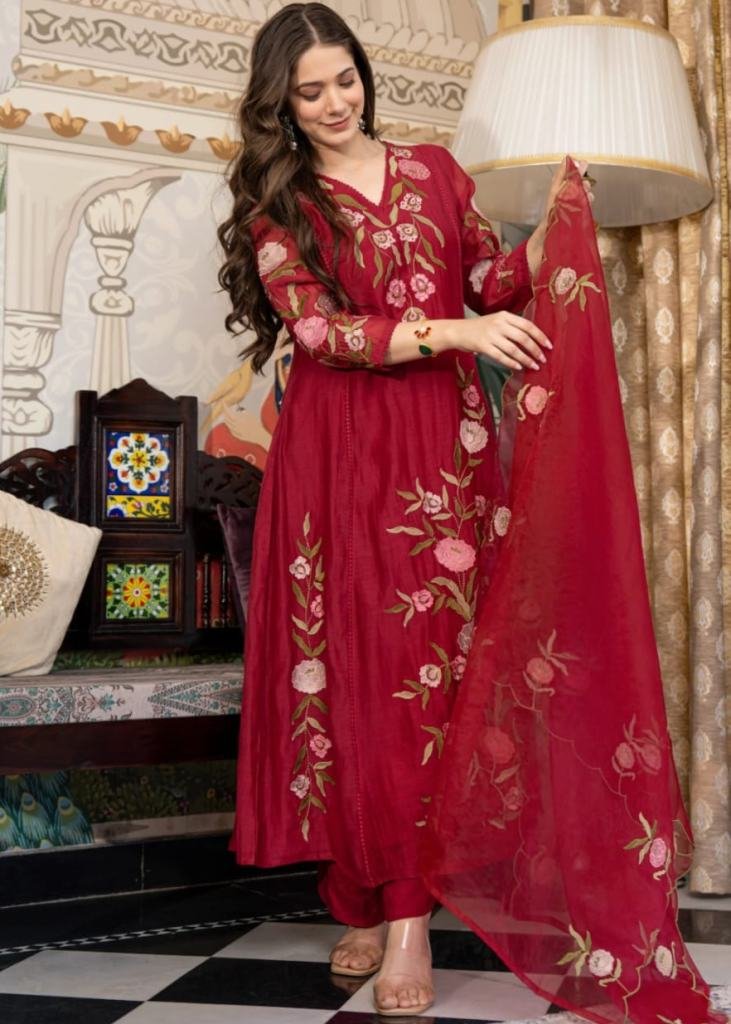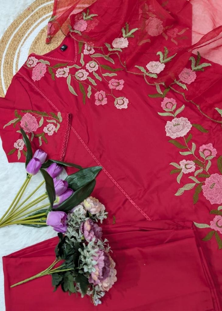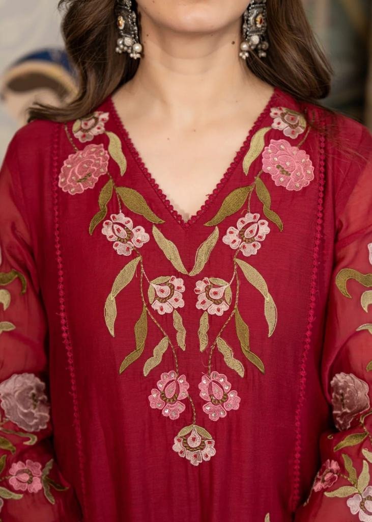 | NAME : | SAPNA Designer 3 Piece Kurtis Set Pure Viscose Chanderi With Embroidery Sequence Work Maroon Color |