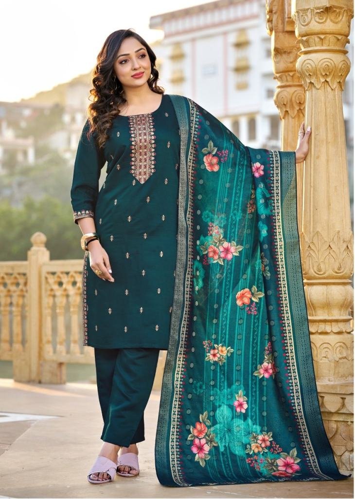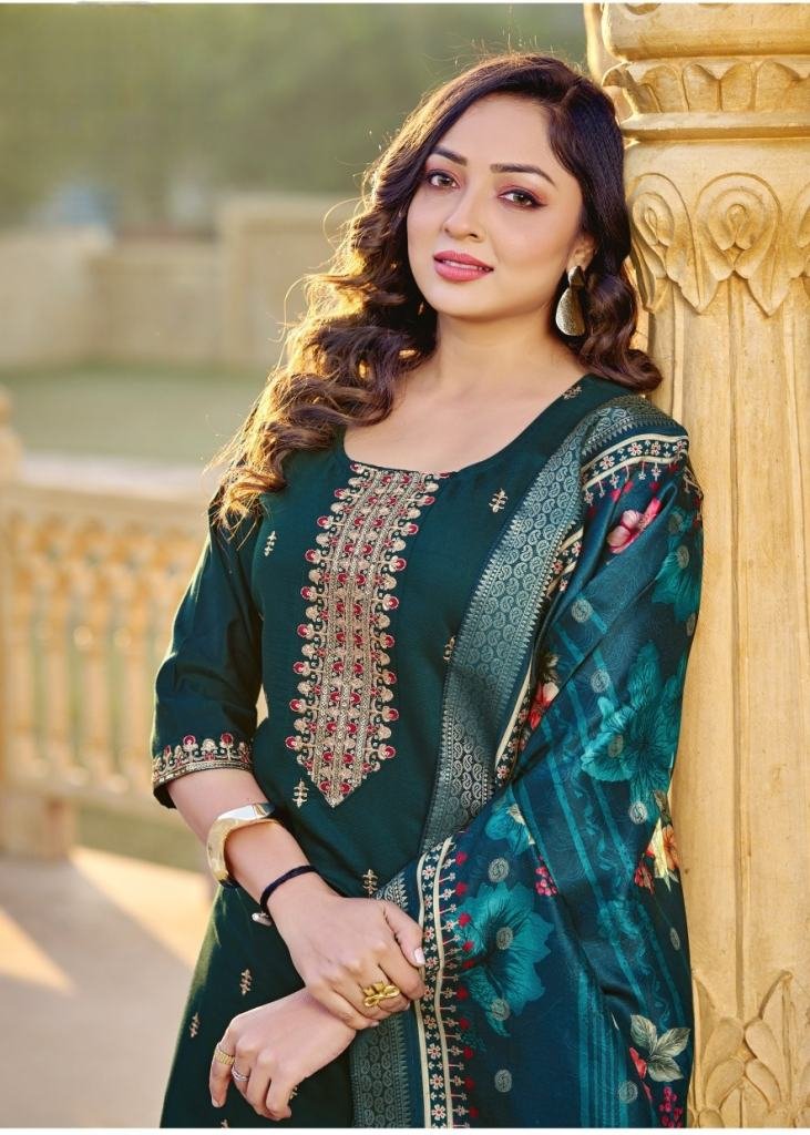 | NAME : | SNAYA Ready made Kurta Set Gadhwal Silk With Heavy Embroidery Sequence WORK Teal Green Colour DN 1001 |