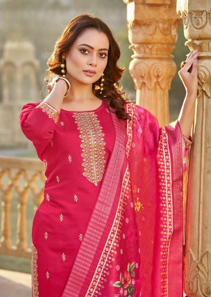 SNAYA Ready made Kurta Set Gadhwal Silk With Heavy Embroidery Sequence Work Rani pink Color DN 1004