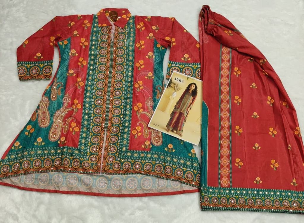| NAME : | Sayuri Aura Real Premium Crepe Silk With Mirror Work Cord Sets Rust Red Color DN 1087 |