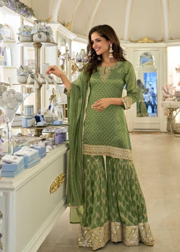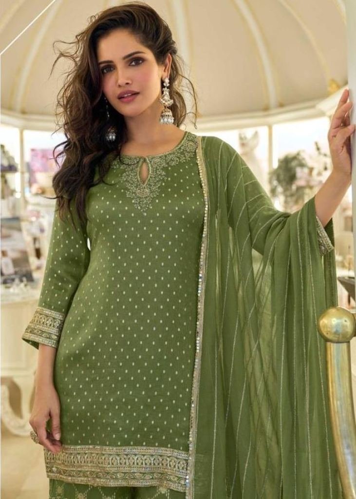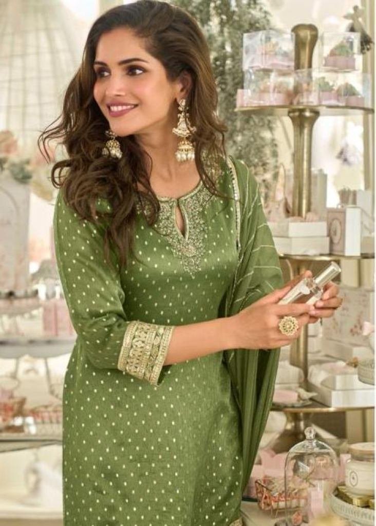 | NAME : | Sayuri Designer Amrit Salwar Suit Viscose Jacquard Silk With Embroidery work Green Color DN 5858 |