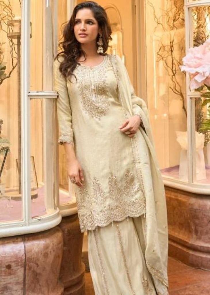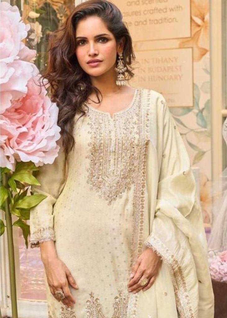 | NAME : | Sayuri Designer Amrit Salwar Suit Viscose Jacquard Silk With Embroidery Work Off White Color DN 5859 |
